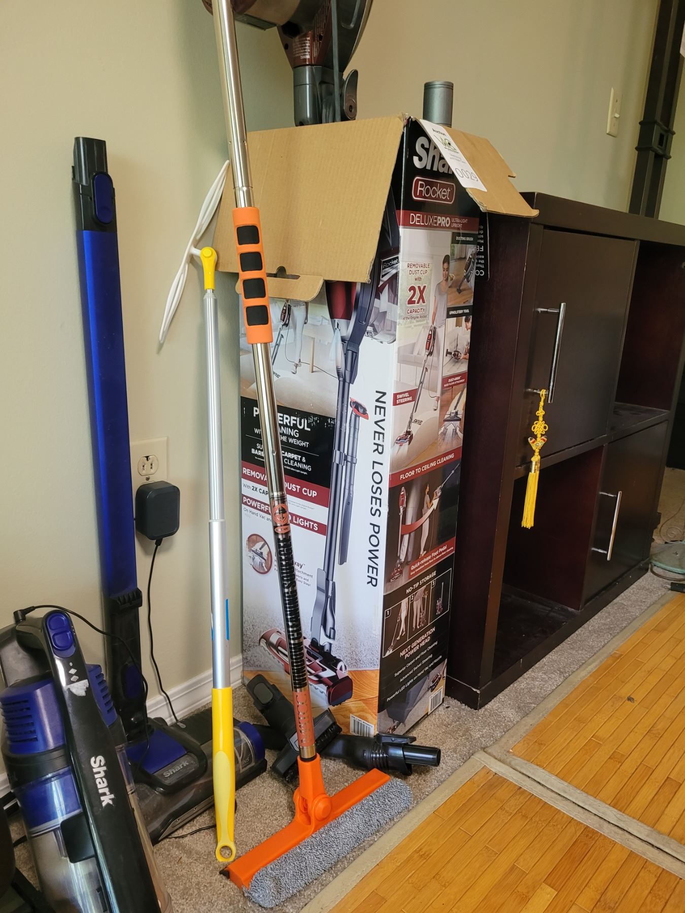 Shark Deluxepro Rocket vaccum with attachments, Sharkportable and stick vaccum. Untested pick up 9-10. Includes Matcc window cleaning squeaky.