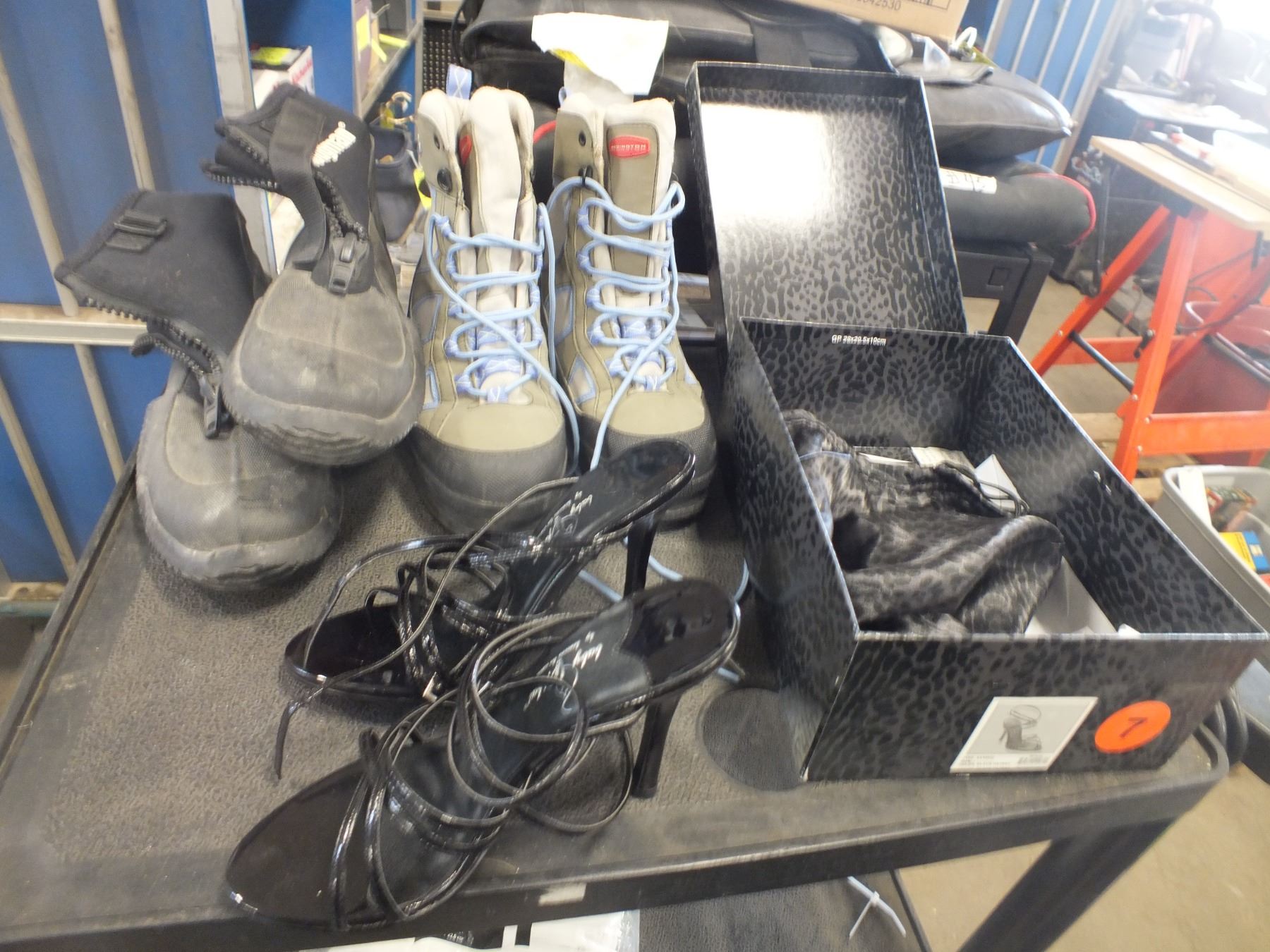 you get ladies high heels size 7, grey boots size 7, black boots size 6....new/used