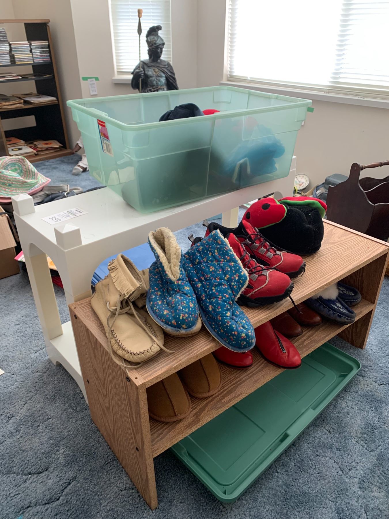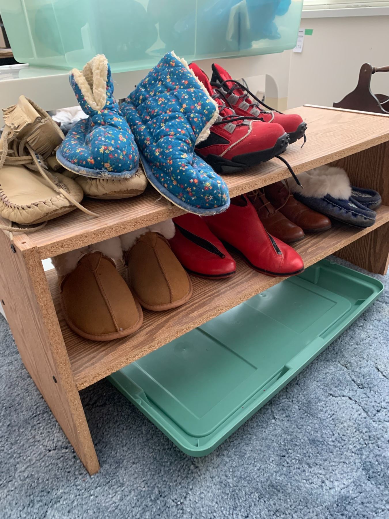Ladies shoes & slippers size 7, Shoe rac and plastic rack 32x20x11 Pickup at 10 am