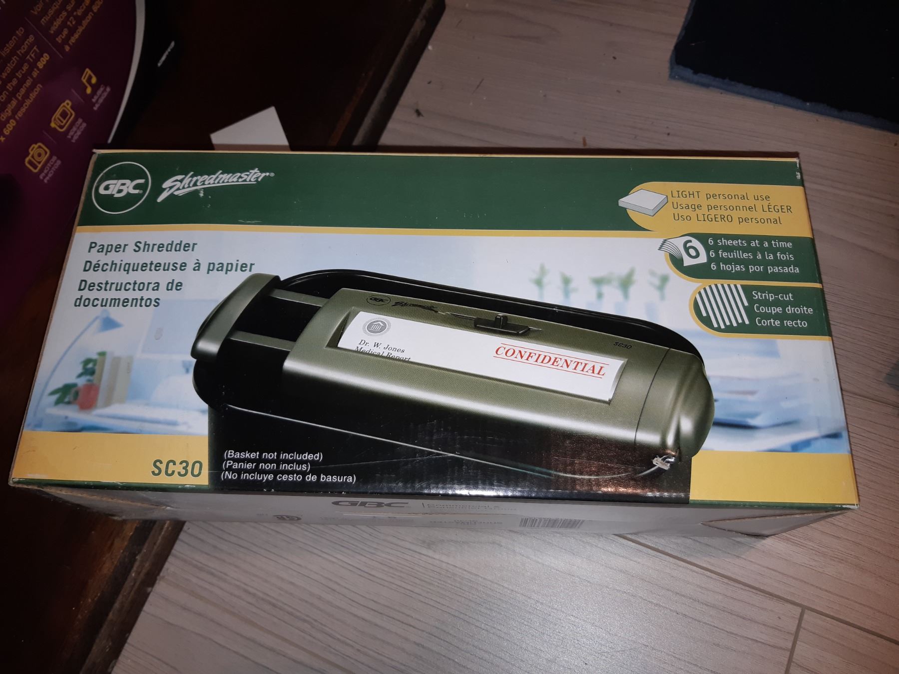 GBC shredder, Aluratekb12" Digital frame. CD Discs, 2 VHS movies. Pickup at 9 am