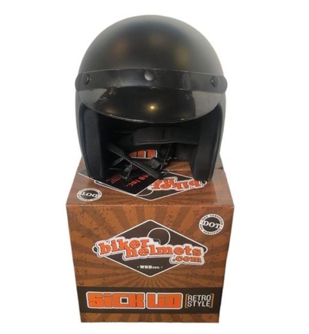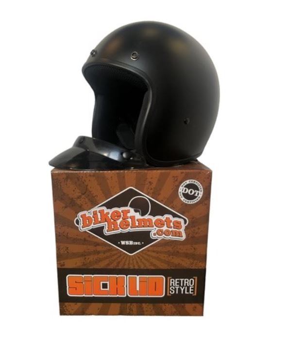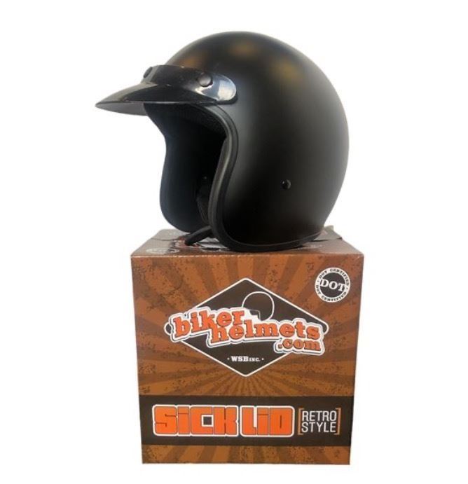 Sick Lid Retro Style Flat Black Dot Certified Biker Helmet, size M (new in box)