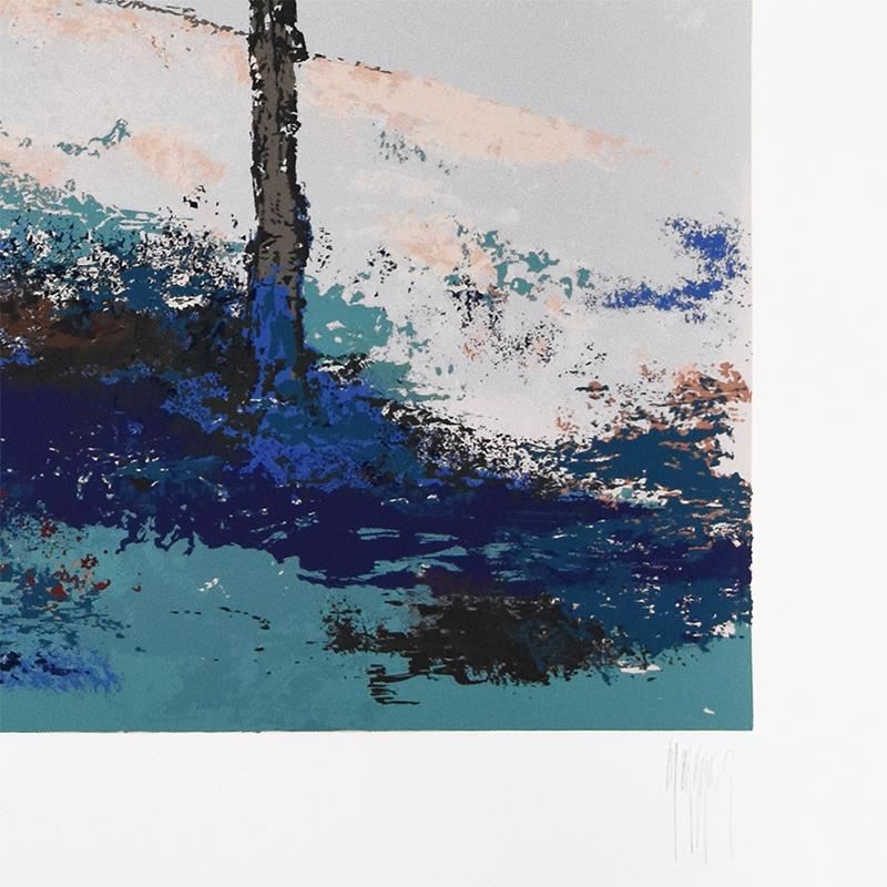 "Sidewalk Cafe" is a limited edition serigraph on paper by Mark King (1931-2014), numbered and hand signed by the artist. Includes Letter of Authenticity. Measures approx. 35" x 45" (border), 30" x 40" (image). Please note: due to the age of this piece there is minor discoloration in the white border area.