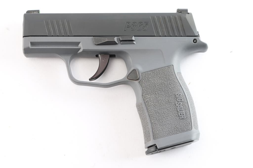 American made Micro-Compact, striker-fired, semi-automatic pistol, X Series gray polymer frame with Nitron finished slide, approximately 3" barrel, X-Ray3 day/night sights, SIG Rail accessory rail, smooth curved trigger and textured grips. Bore is excellent. Retains approx. 98% finish on slide and some discoloration on frame grips. Comes with one 12rd metal magazine. NRA condition is excellent. ***Modern Firearm***