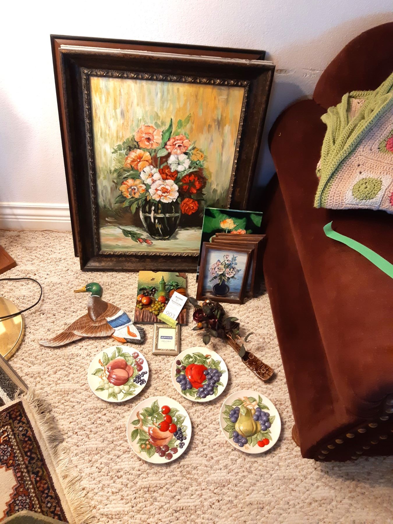 Largest item is 30"x23". Bring packing. Pick up at 9 am.