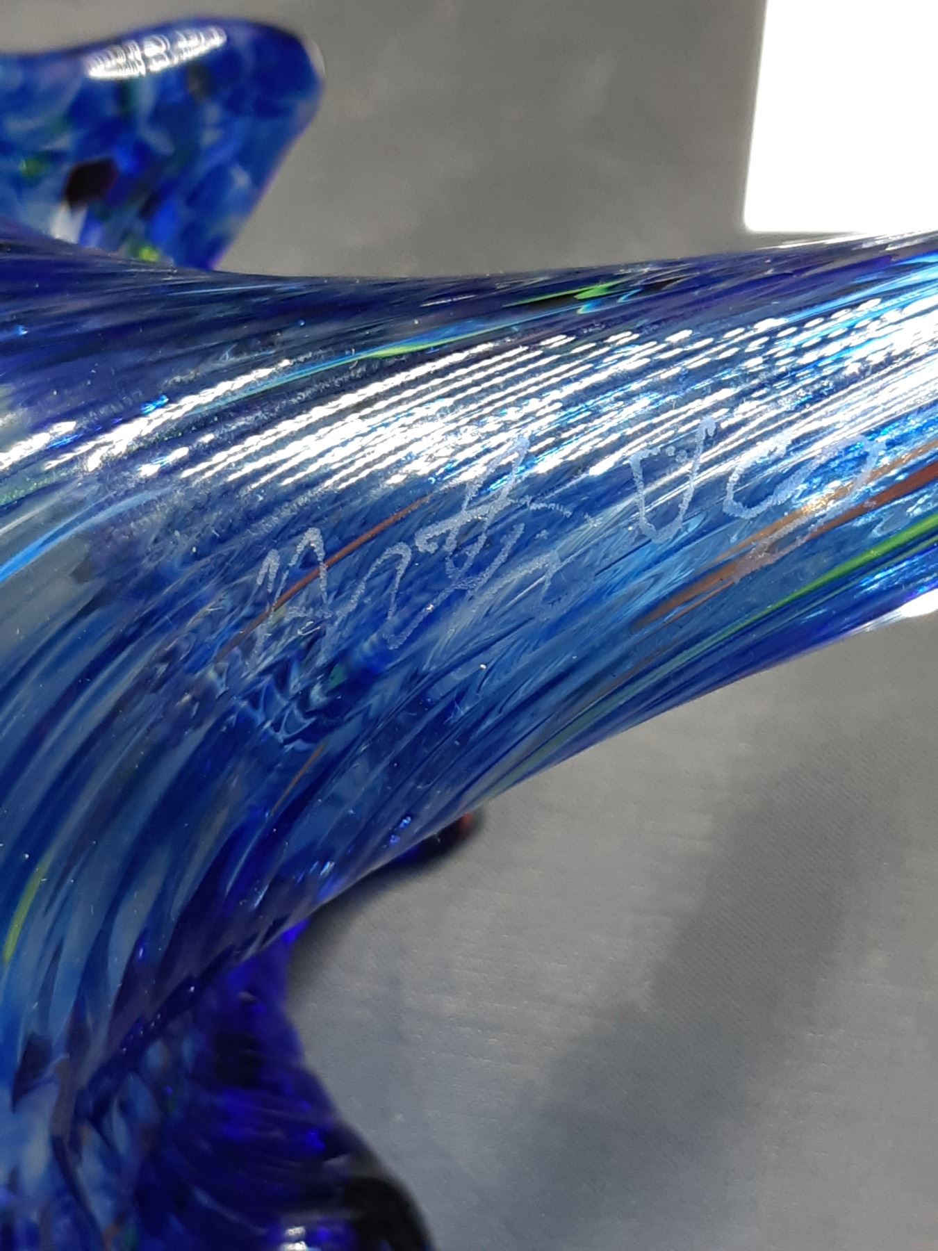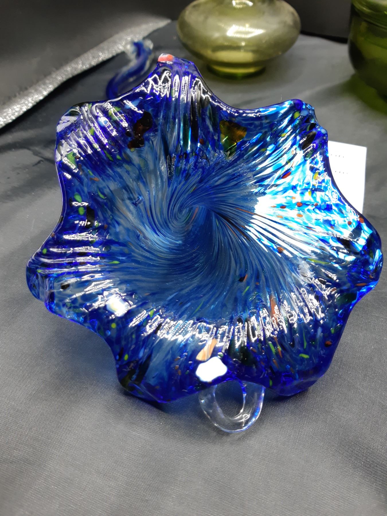 Blue glass flower 5x5x13, and glassware Bring packing materials and pickup at 9 am