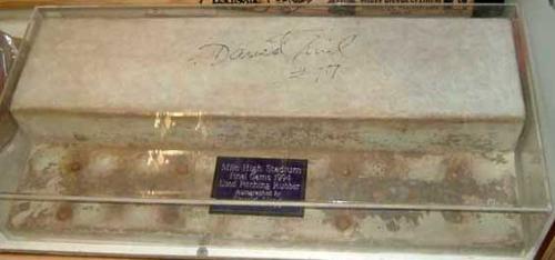 David Nied autographed pitching rubber from final game at Mile High Stadium, 1994.