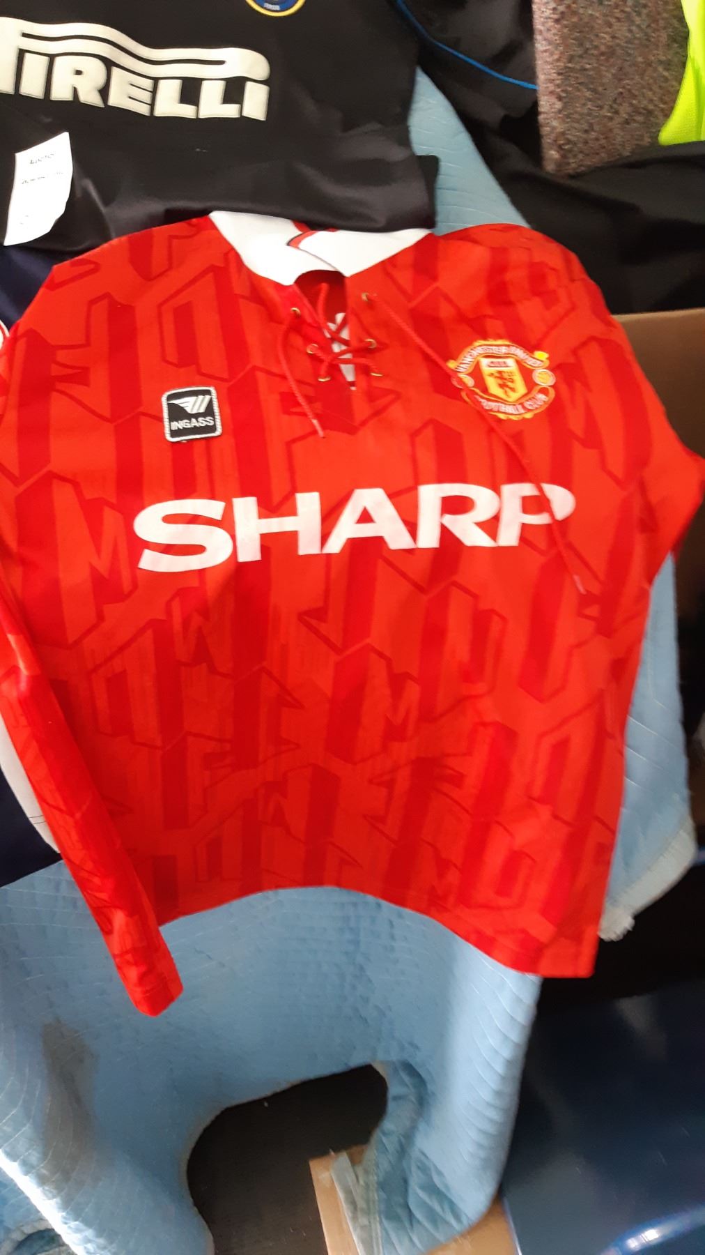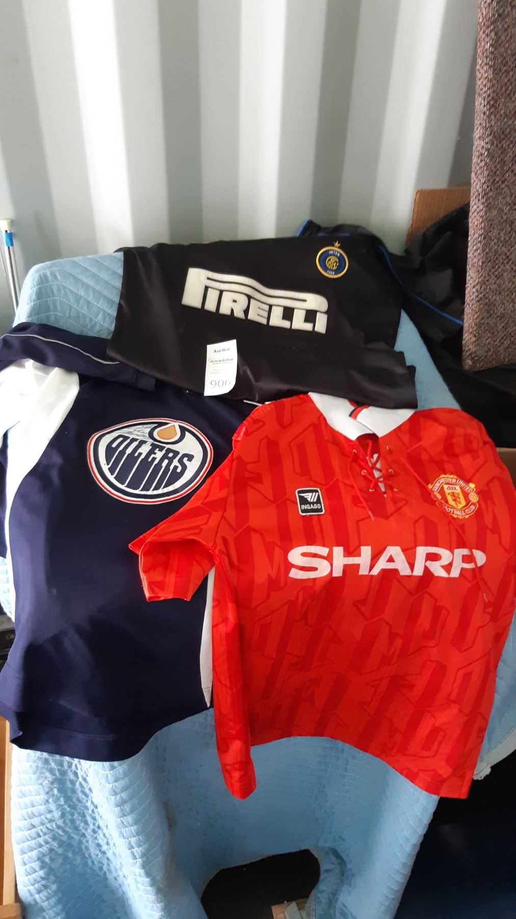 Sharp Manchester United Shirt size XL. George Laroque signed Edmonton Oilers Shirt Adult Medium & Pirelli Adriano 10 size Large Pickup at 10 am