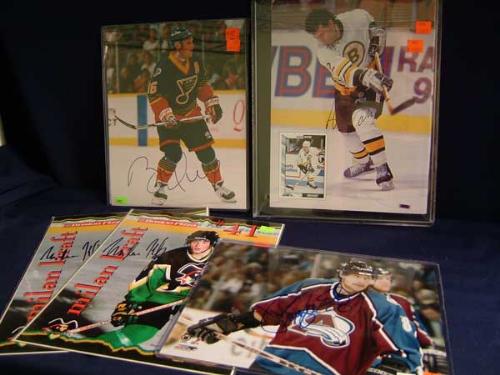 Autographed photographs of Brett Hull, Adam Oates & Teemu Selanne (total 5).