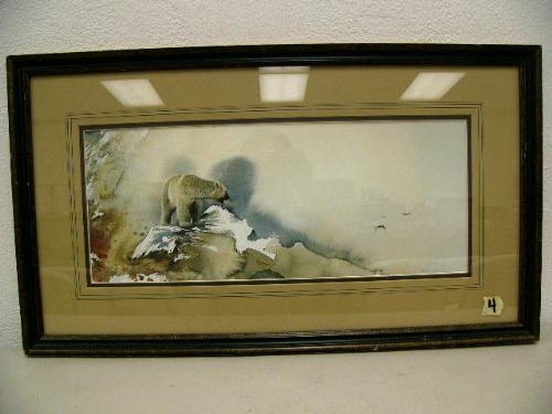 Signed and numbered print double matted and framed by Morten Solberg done in 1978 "Polar Bear" (70)