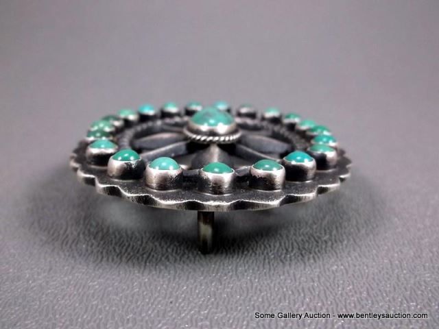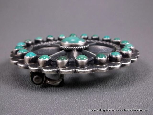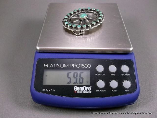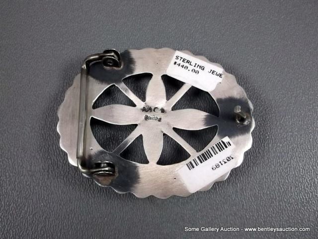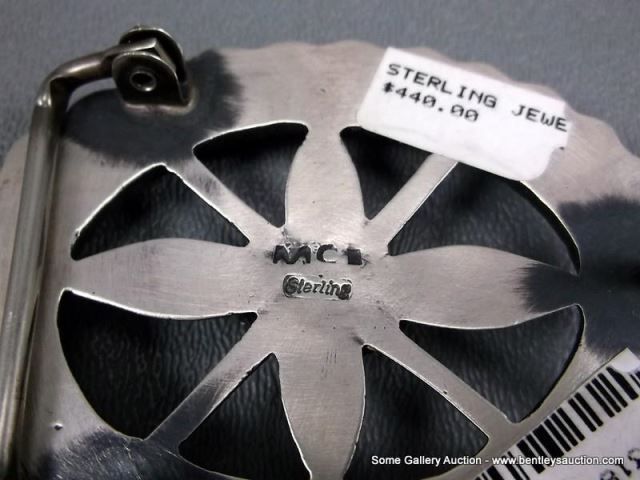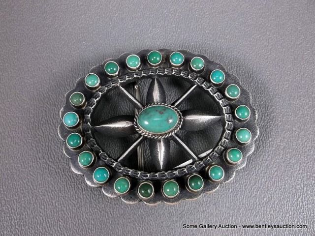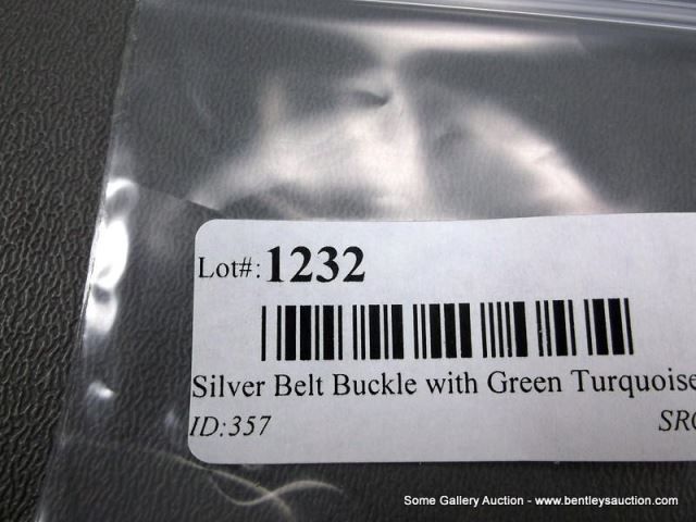 Silver Belt Buckle with Green Turquoise Stone- Marked MCD Weight: 59.6 Grams Retail: $440.00