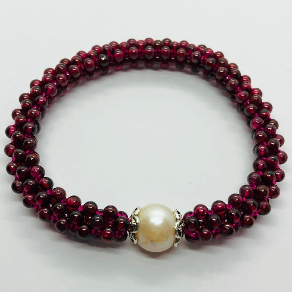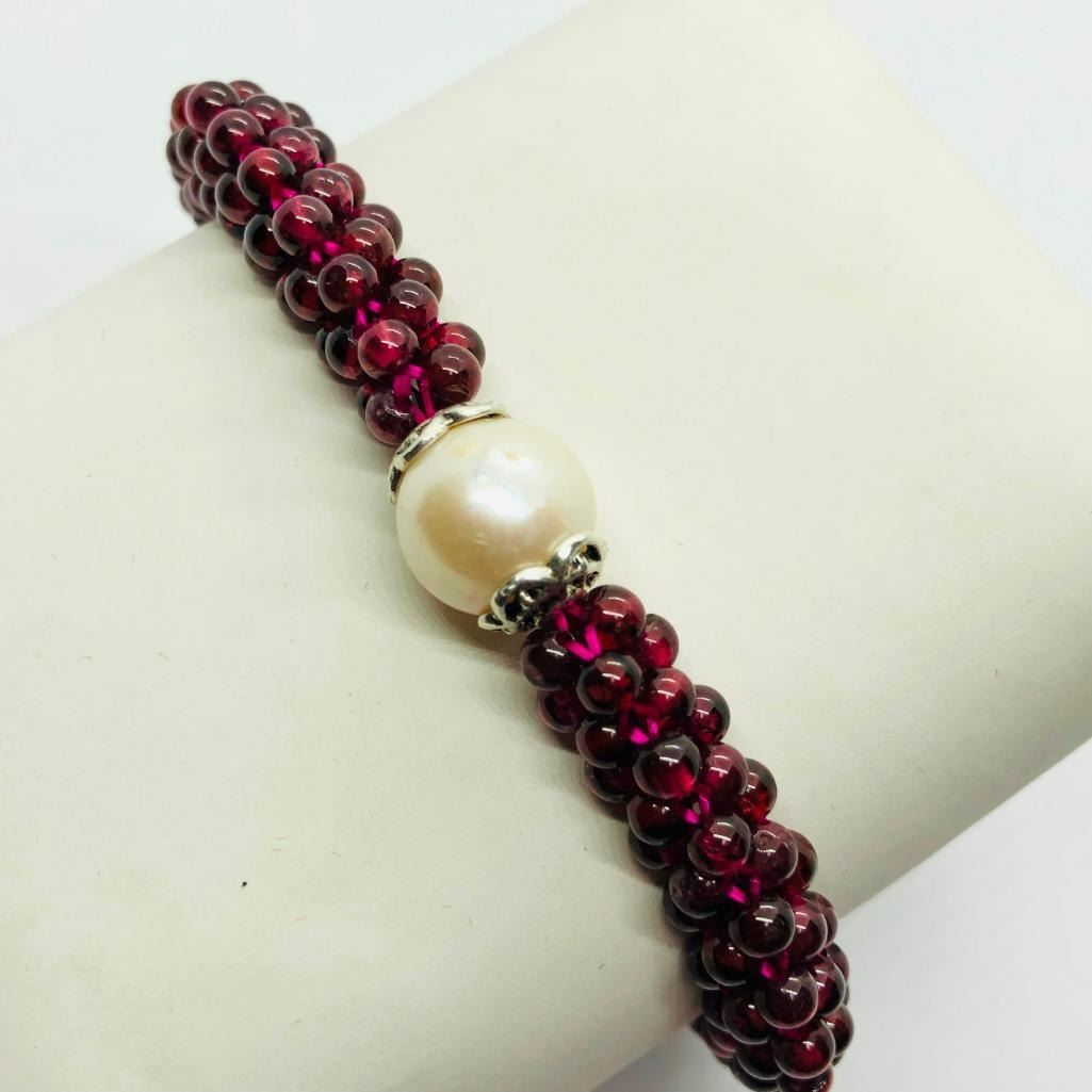 Silver Garnet Pearl Bracelet, Suggested Retail Value $120