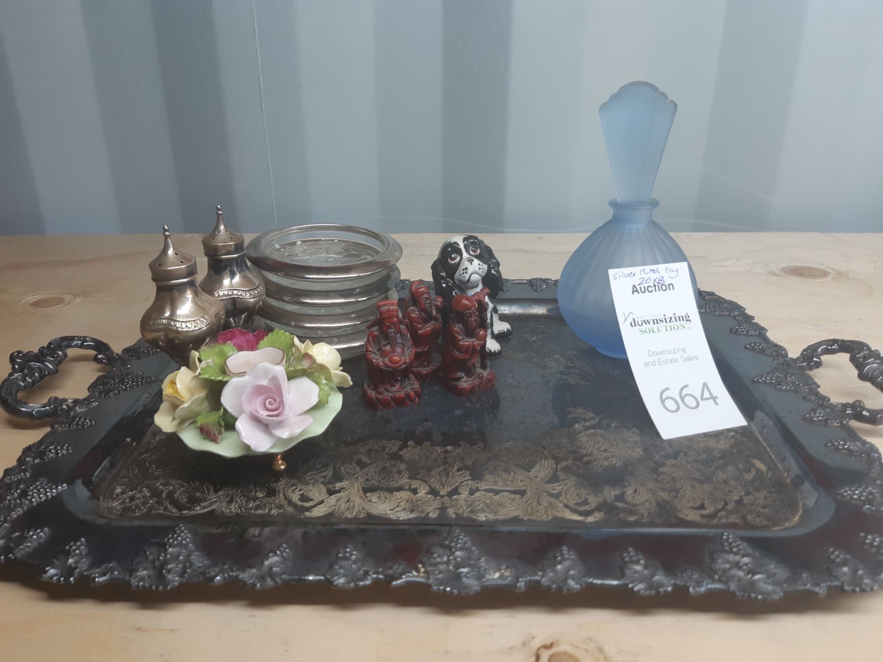Tray 20x13, S&P, Blue Glass Perfume Bottle & More. Pickup at 10 am