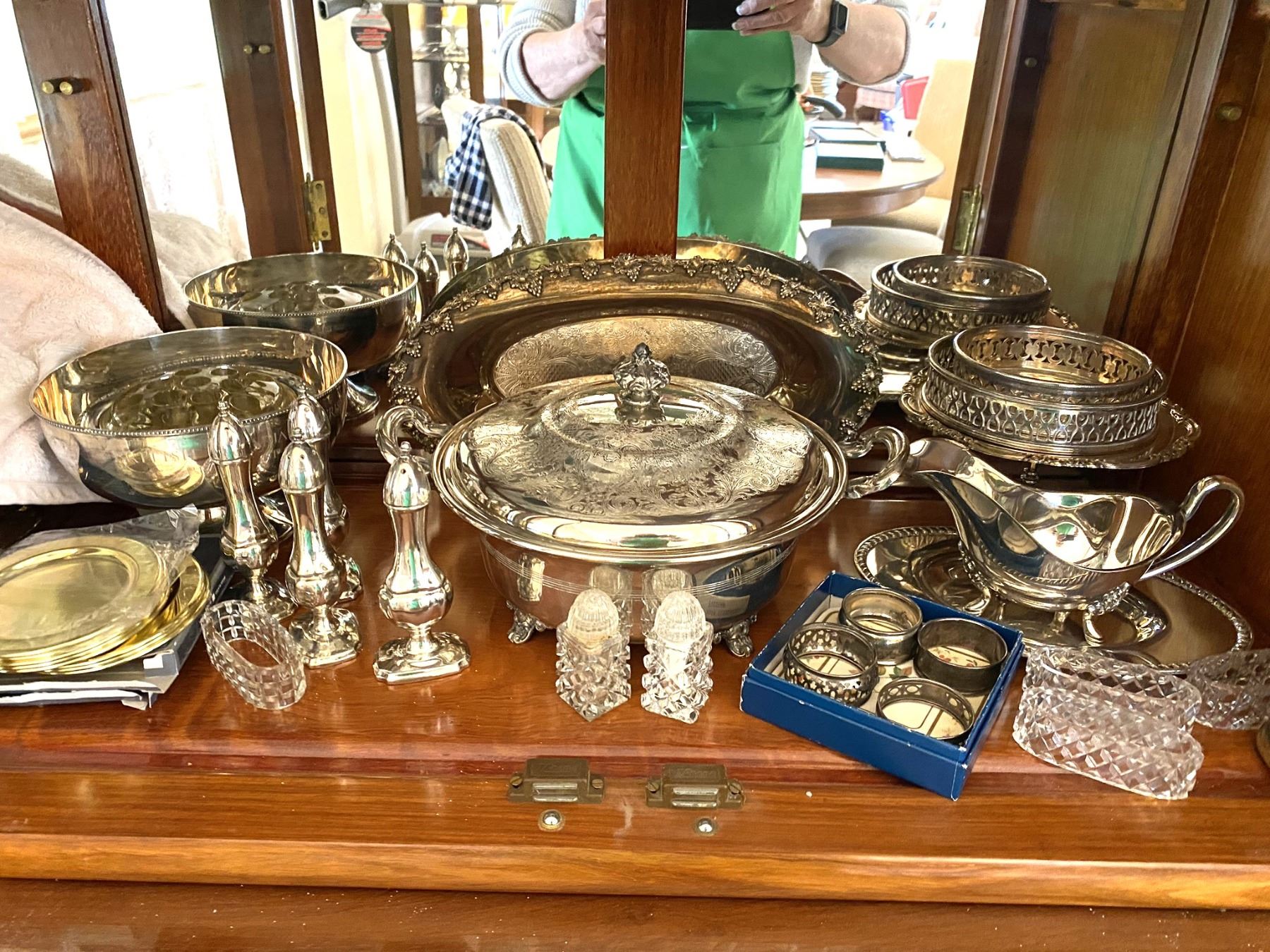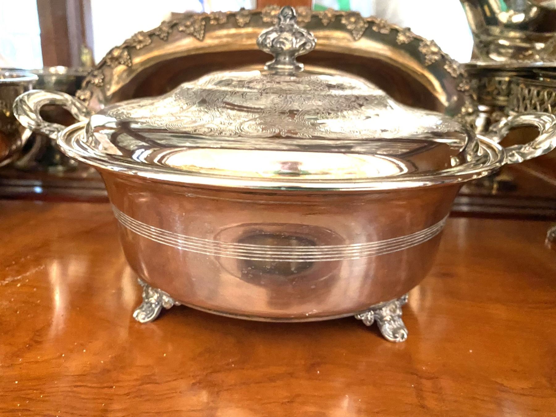 Set of 4 S&P, Round footed lidded Double handled casserole server. Rose bowl, gravey boat and spill dish, oval sandwich server, footed candy dish & more. Bring packing and pickup at 9 am