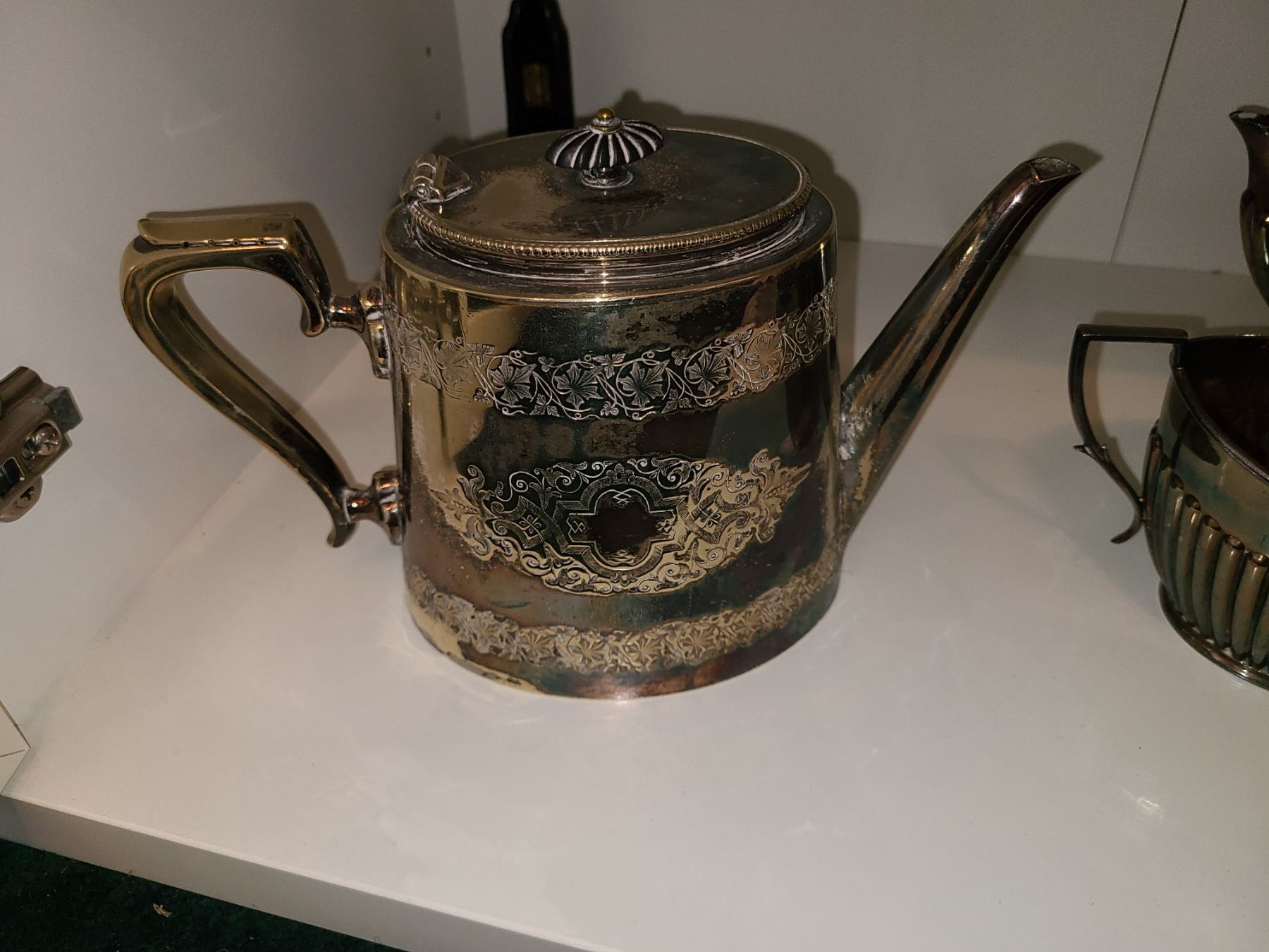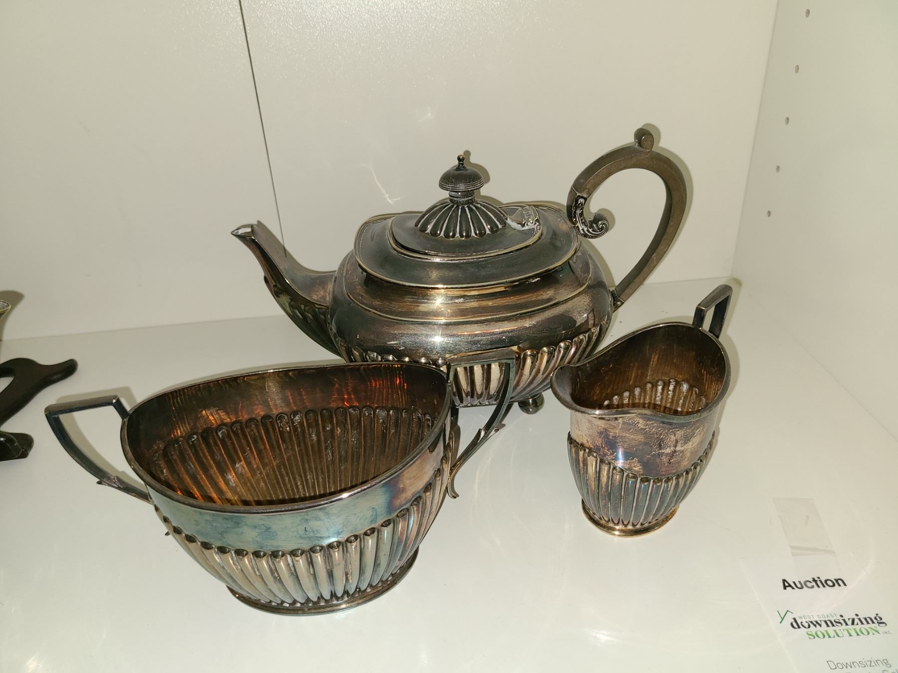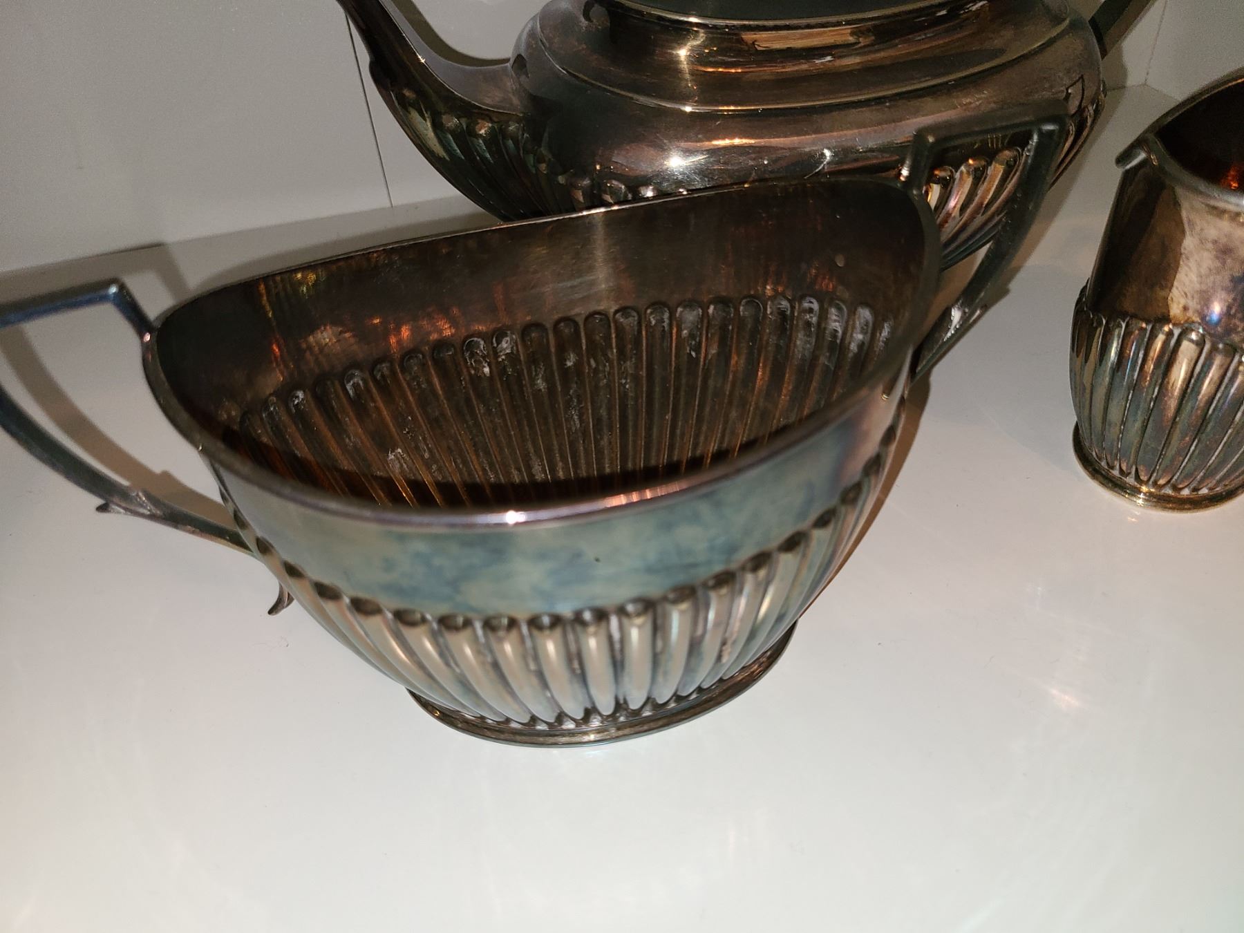 Silver plated tea pot creamer and sugar bowl fluted design 1 silver plated teapot pick up 9am