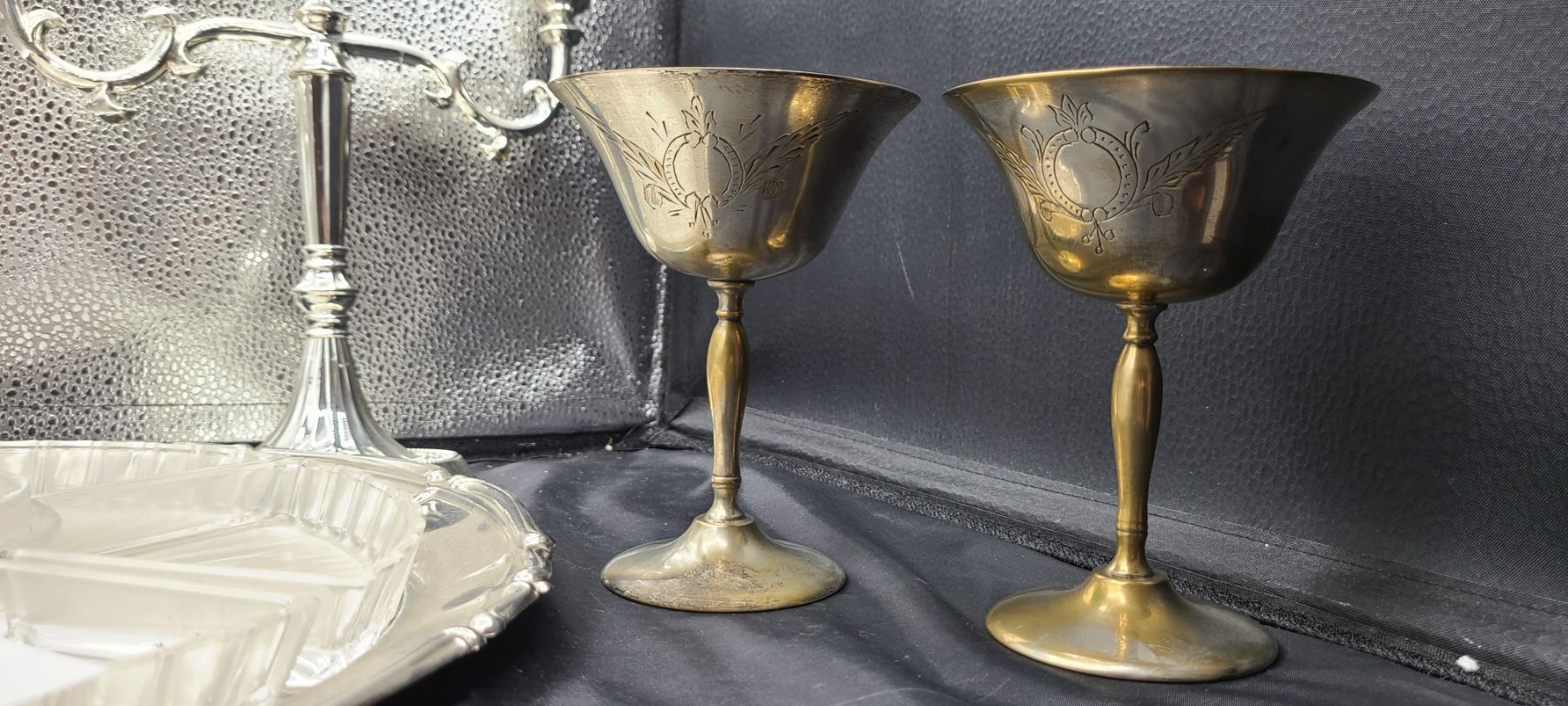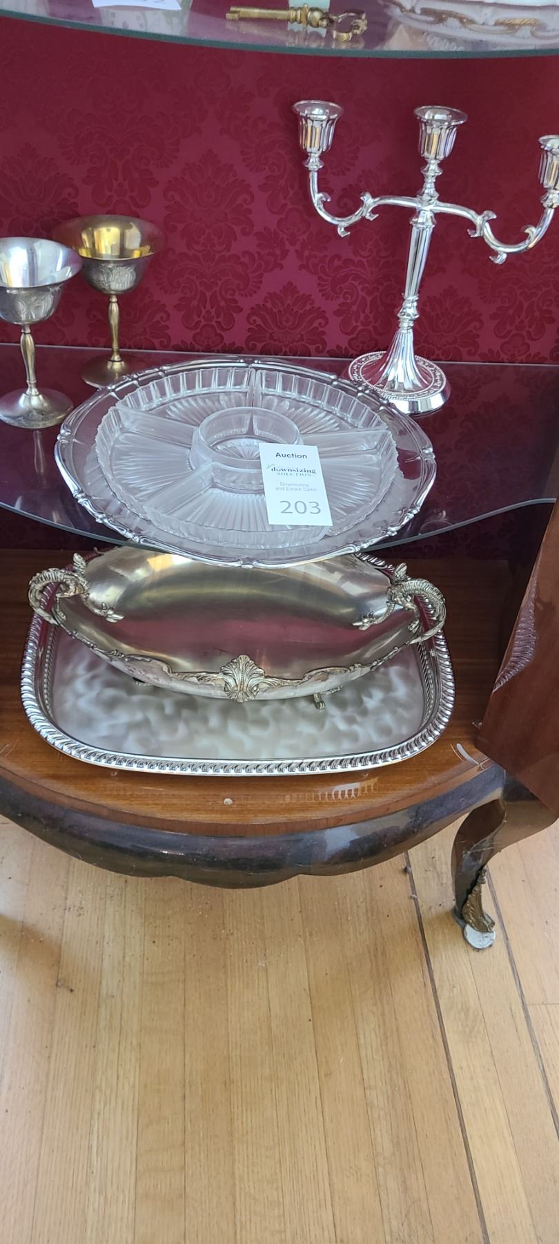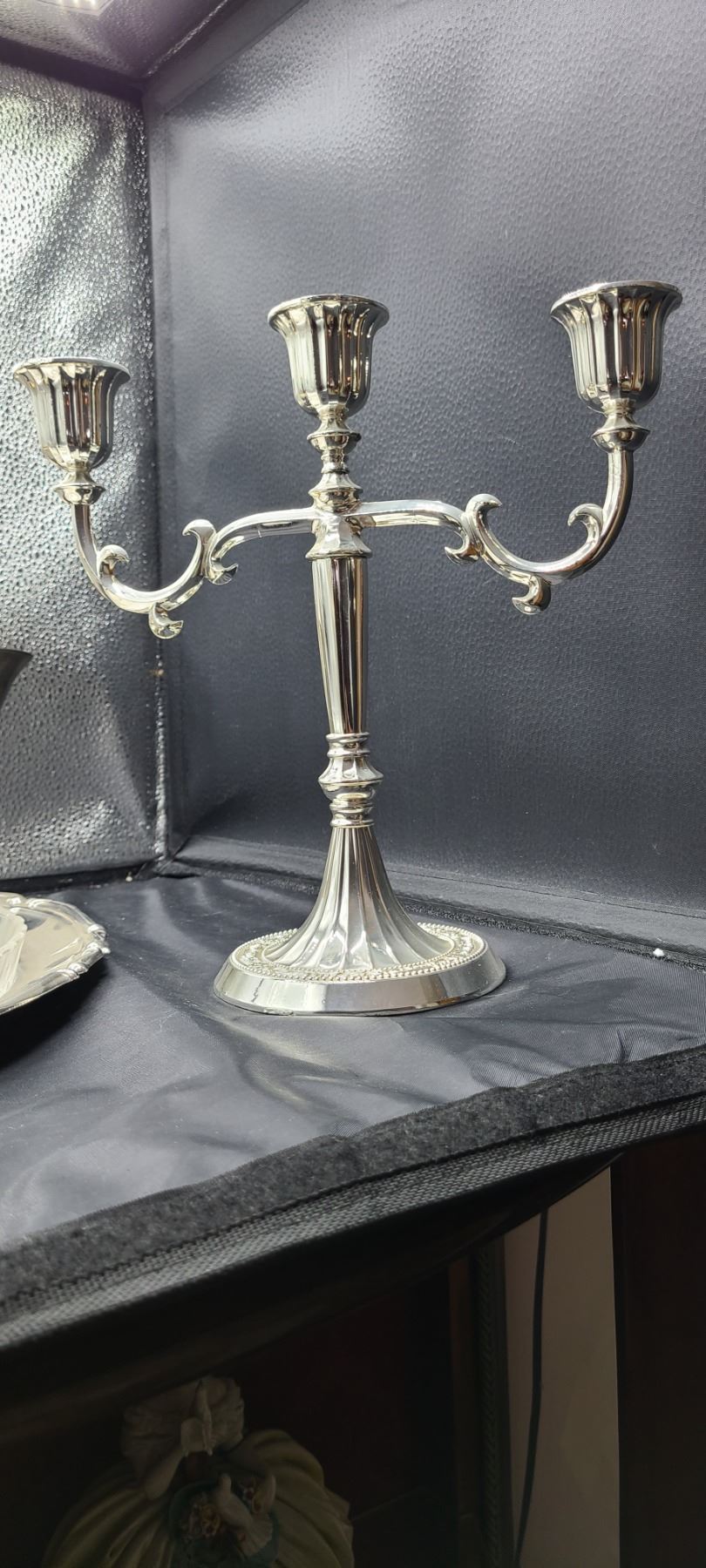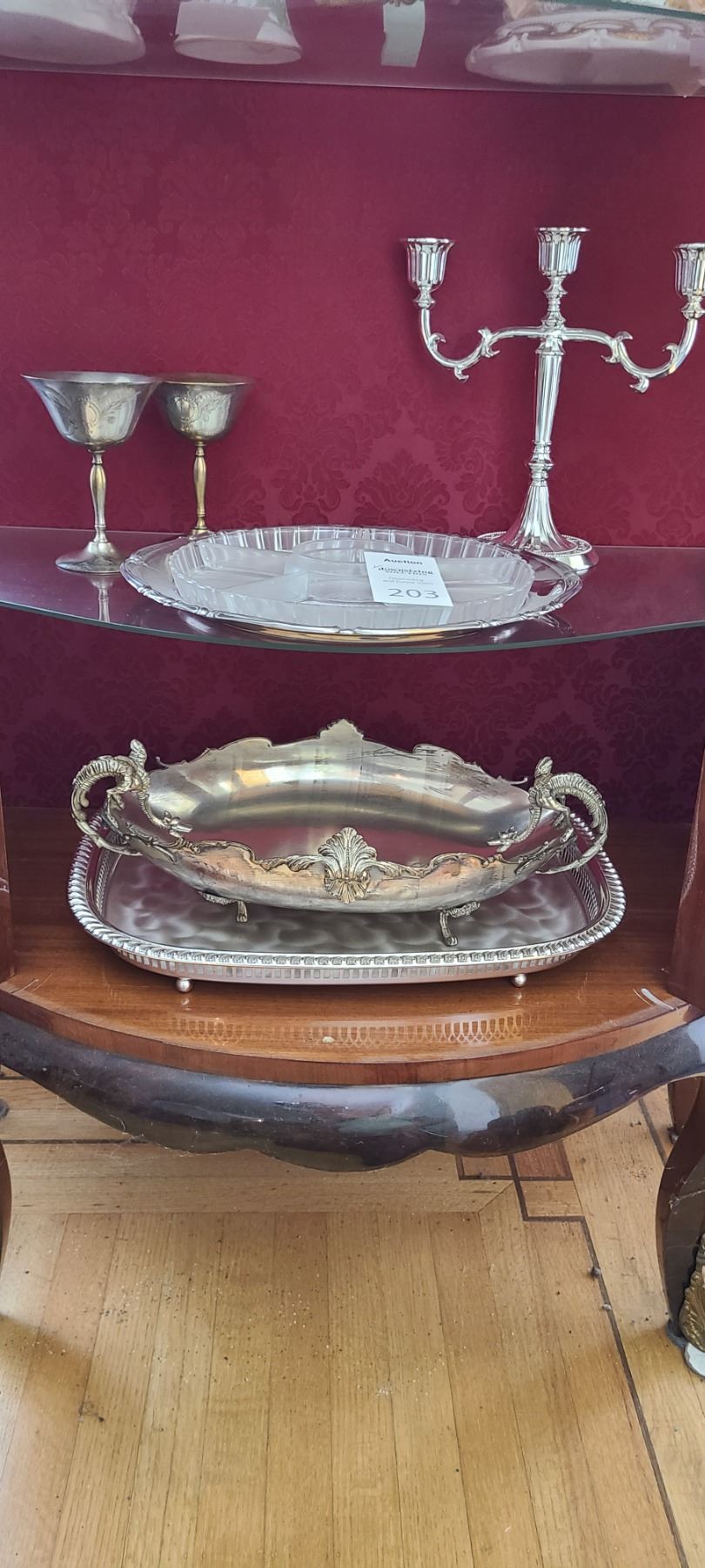 Candelabra, goblets, serving tray with glass insert, dragon centrepiece and tray.pick up 9-11