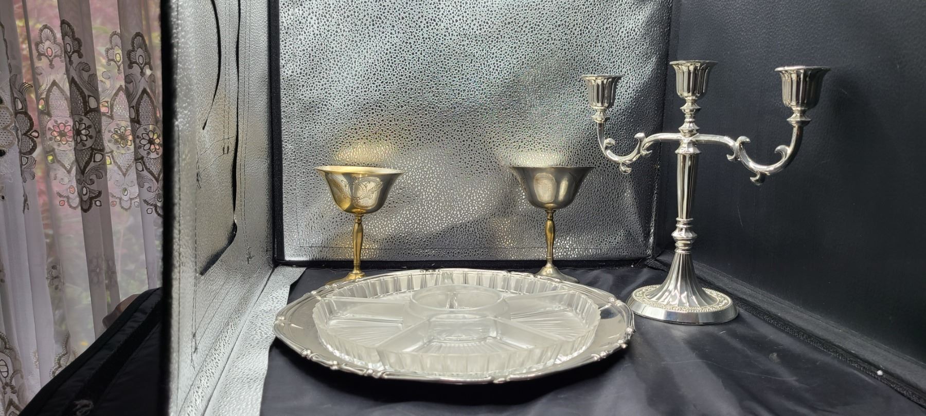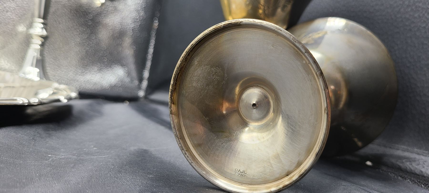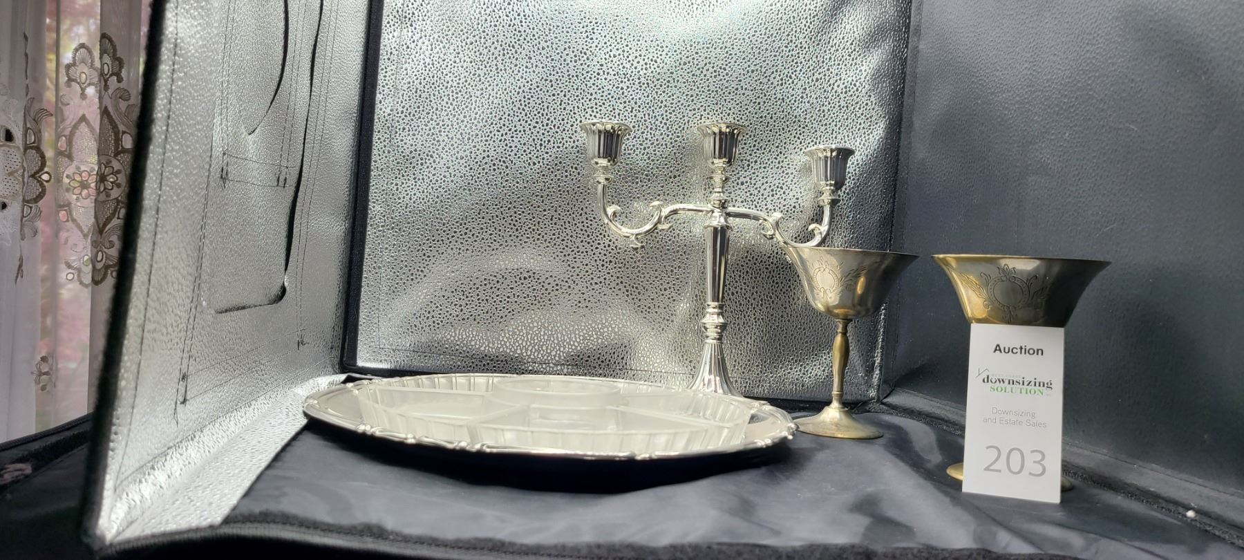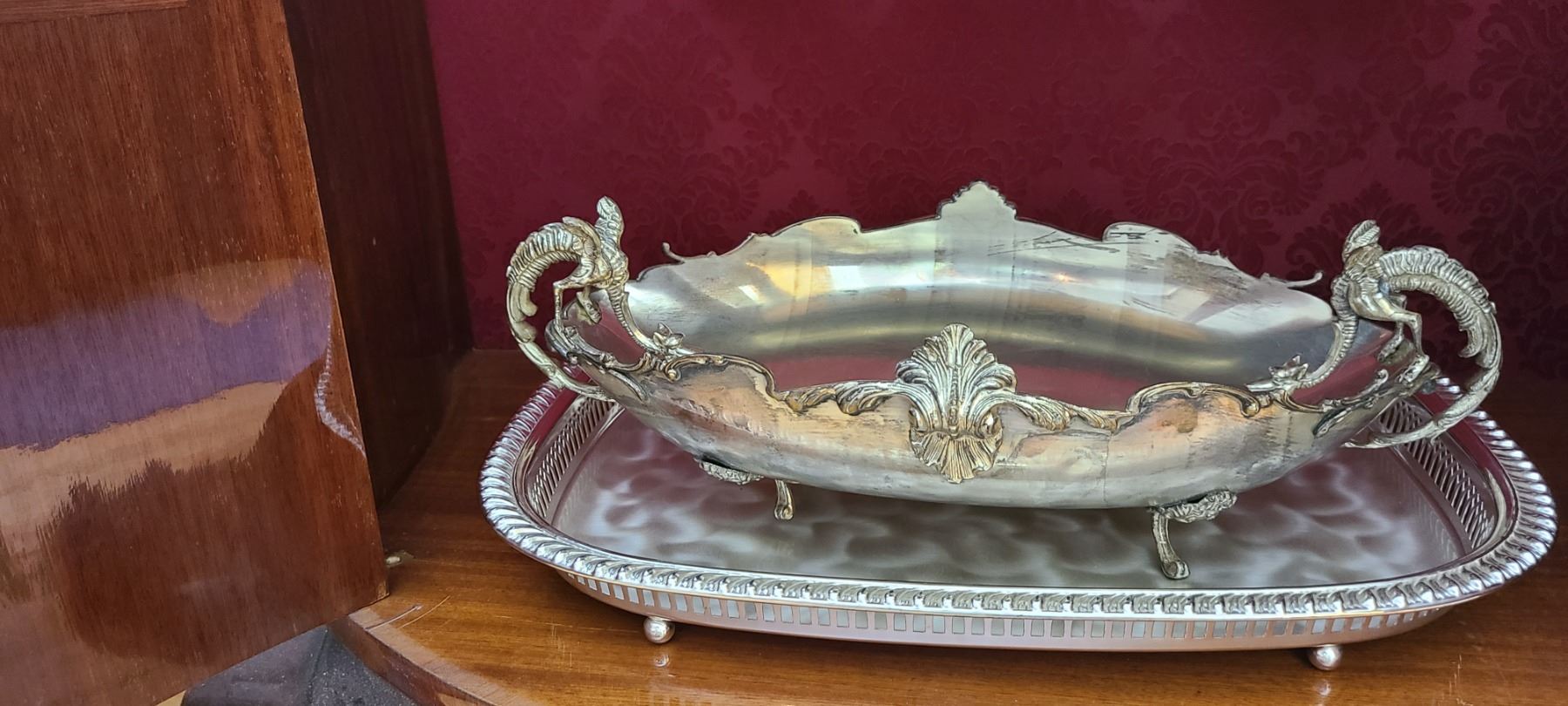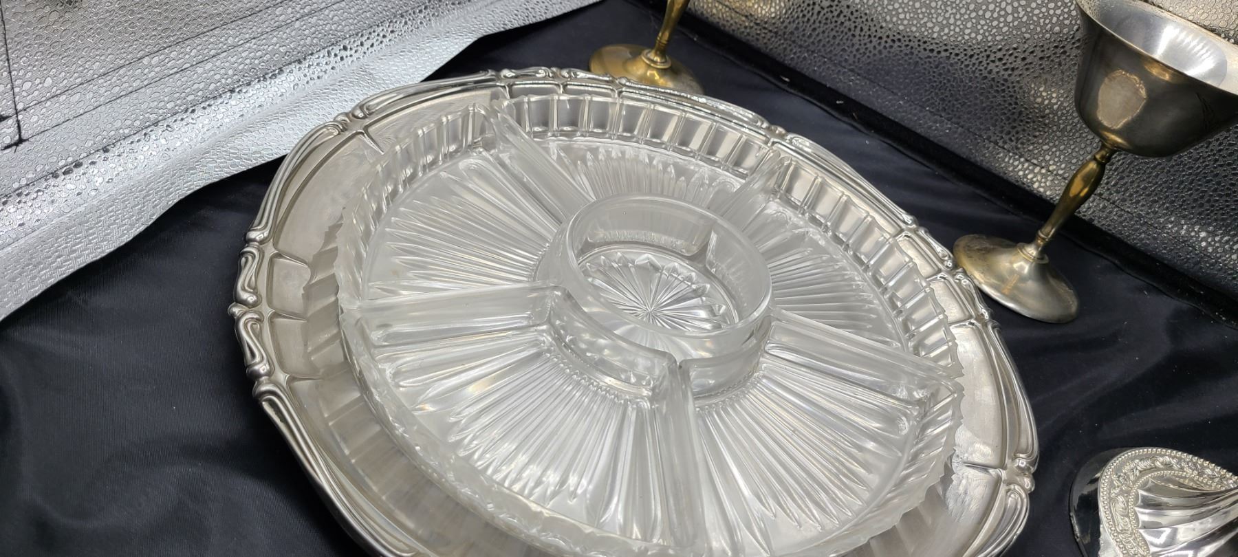 Candelabra, goblets, serving tray with glass insert, dragon centrepiece and tray.pick up 9-11
