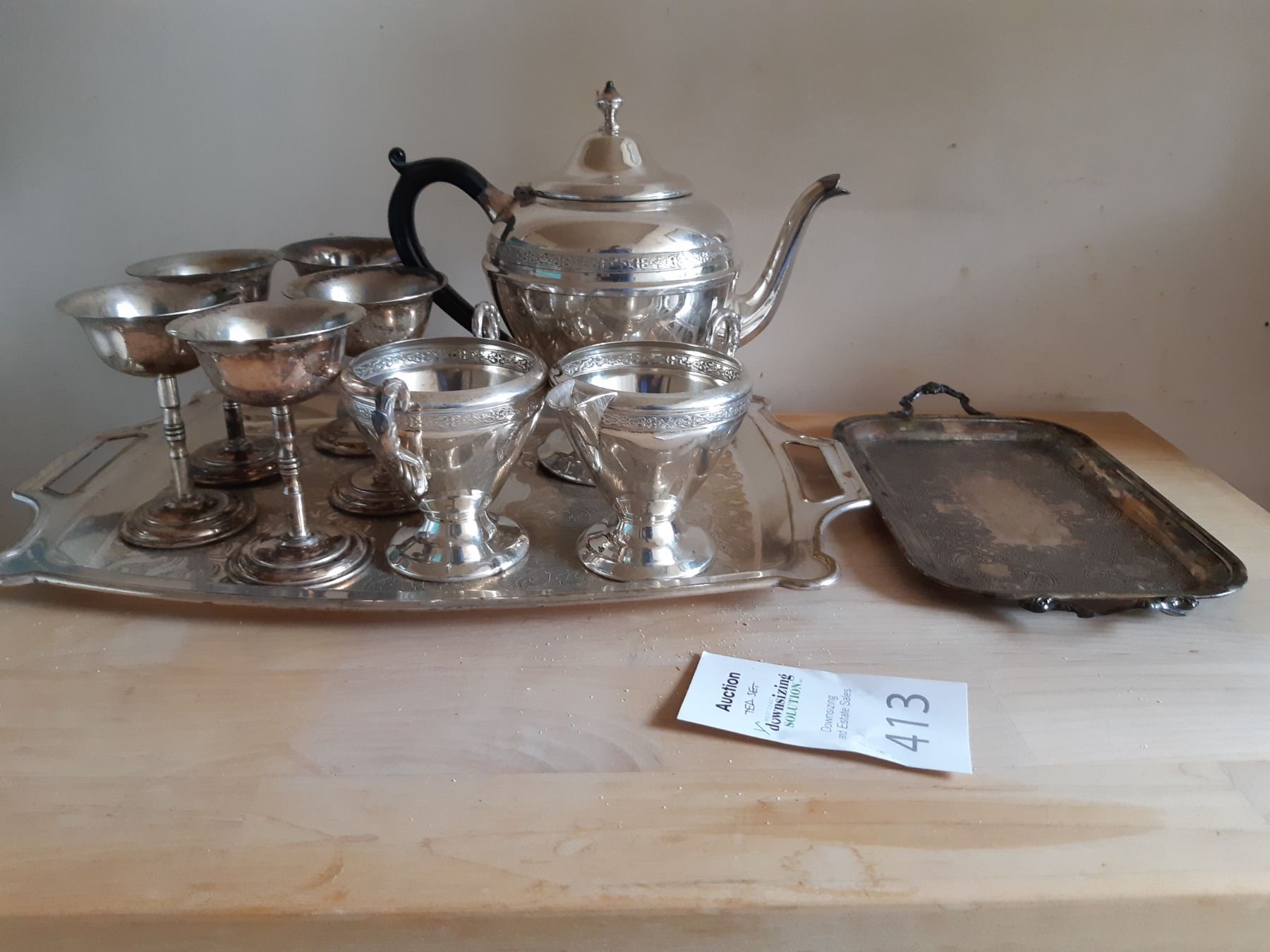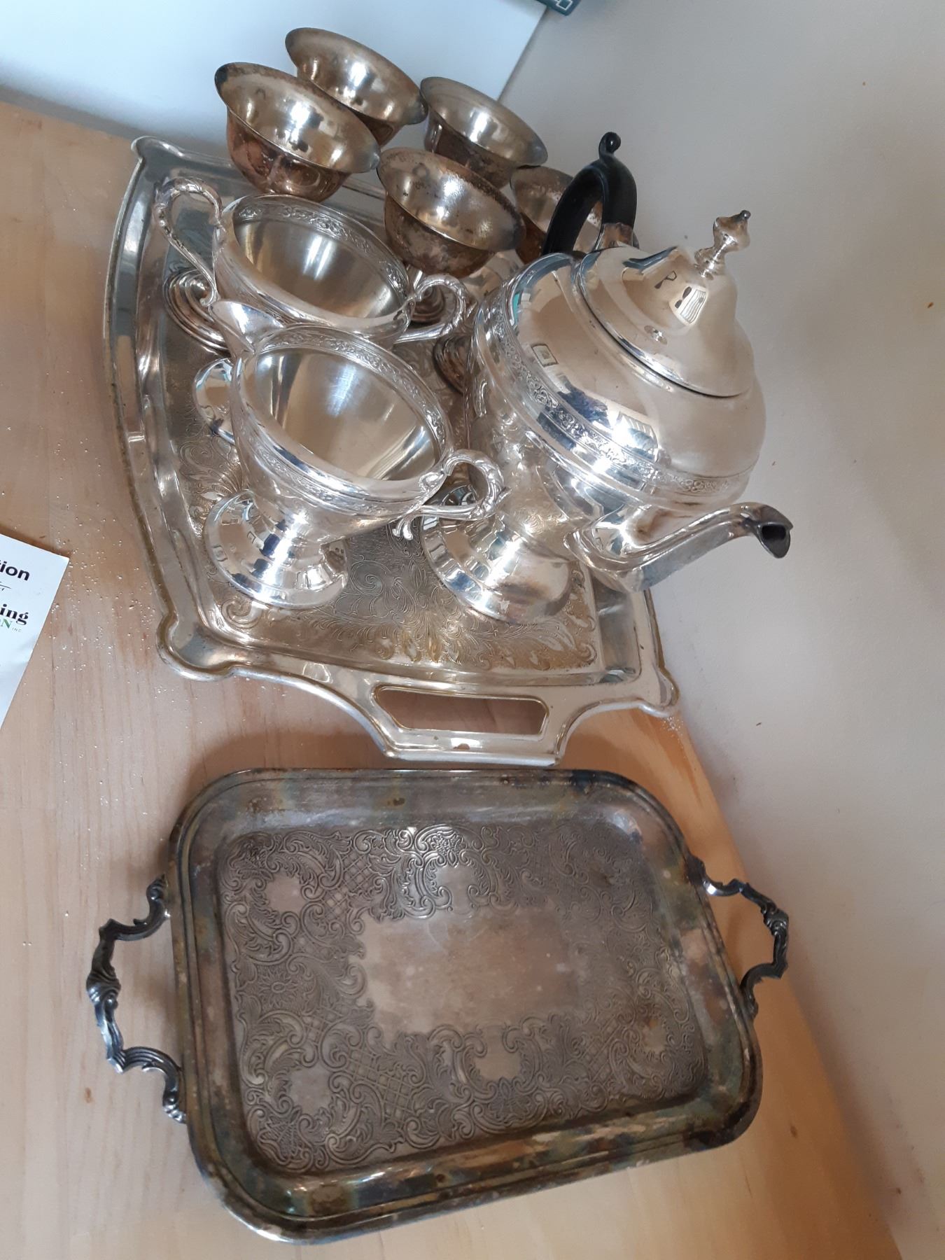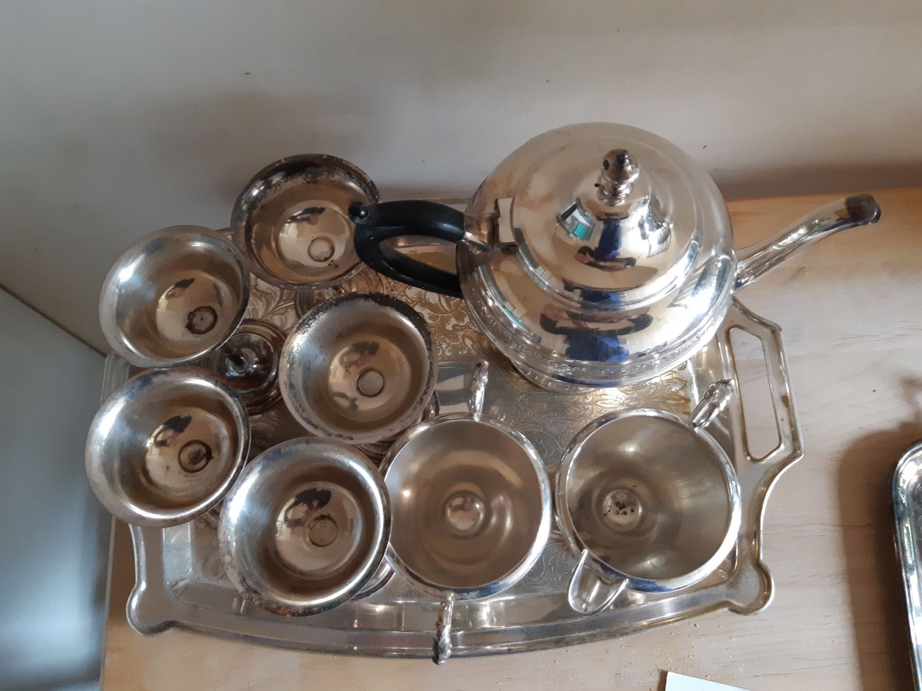 Tea pot, cream, sugar and 5 goblets, tray Bring packing and pickup at 9 am