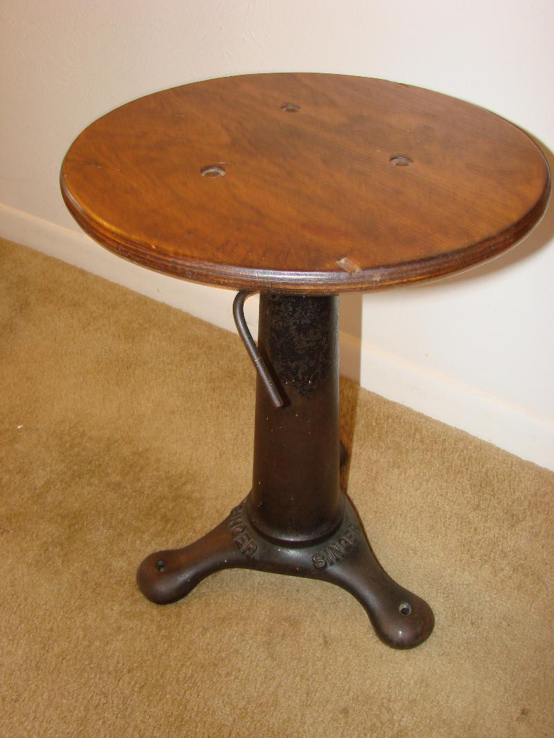 Singer Cast Iron Stool w/Wood Top