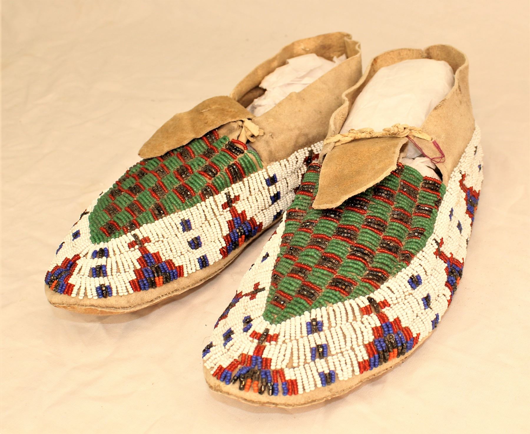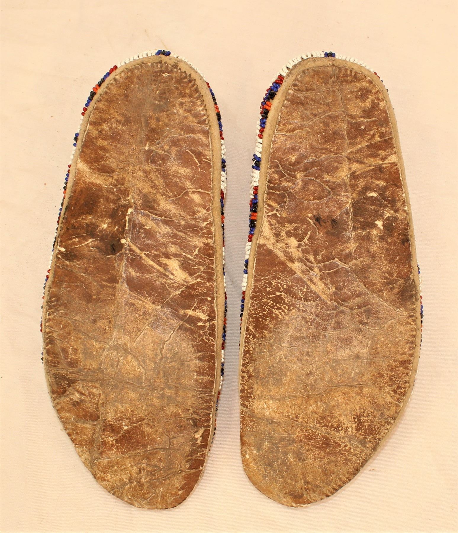 Interesting mans size Plains moccasins with cut glass beads in an attractive pattern.