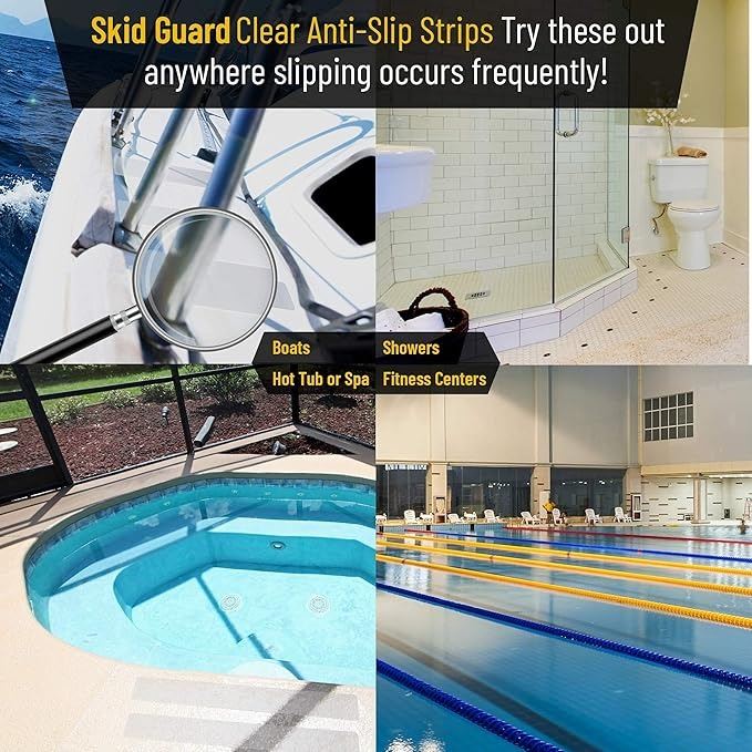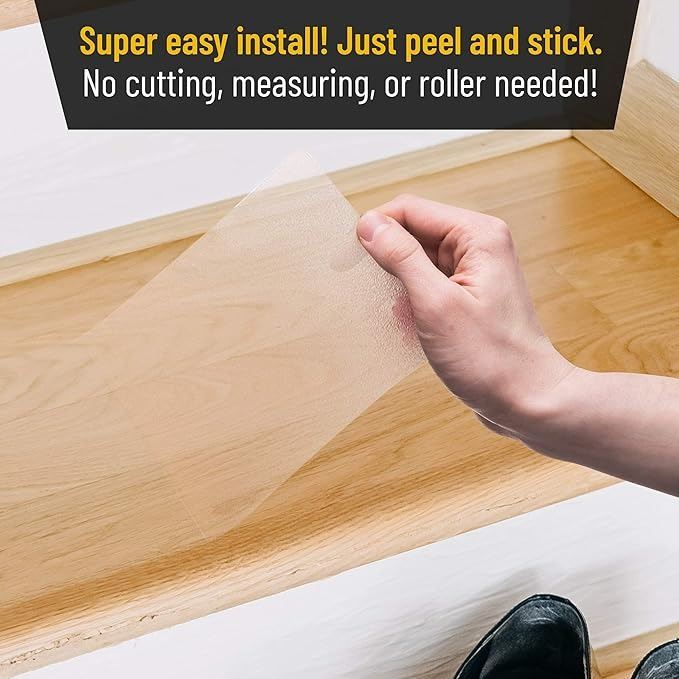 Clear Treads for Stairs - Indoor Non Slip Step Strips 4 x 24 In. SKID GUARD No More Slipping Frosted Vinyl Stair Tread Tape for Bathrooms, Hot Tubs, Boats, Stairs and More (4-Pack)