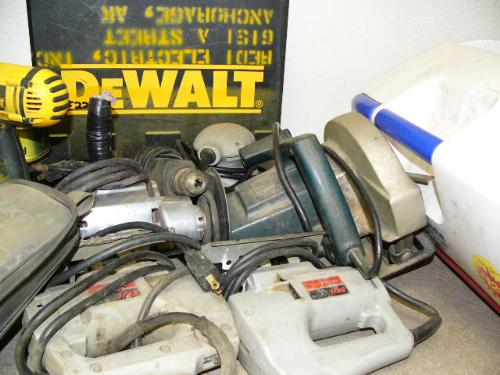 Skill Saws, Grinders, DeWalt Portable Drill, 14.4Volt Hand sander, battery charger, trouble light, d