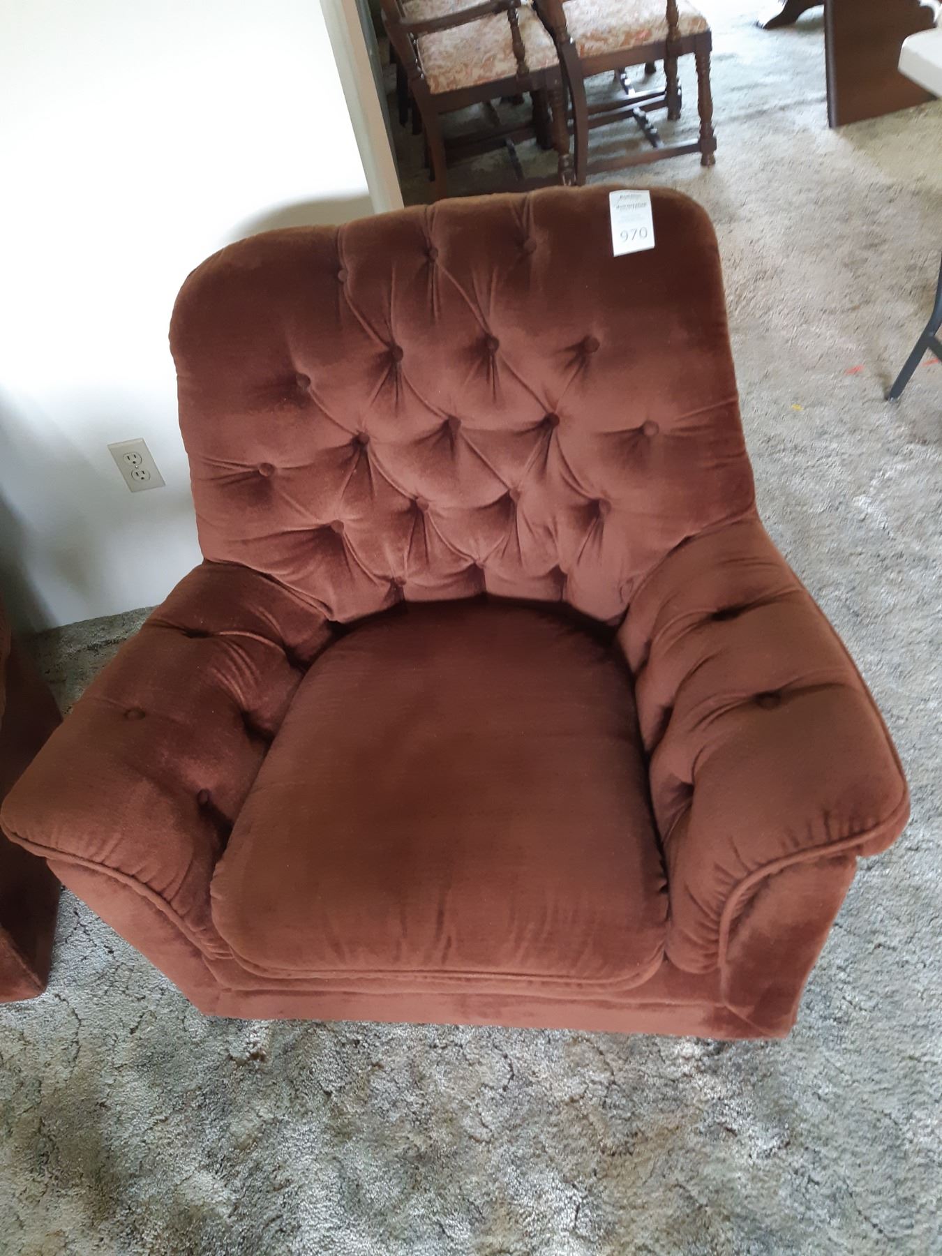 Chair in brown soft velvety fa Rick with button back, 41x31x31 Pickup at 11am