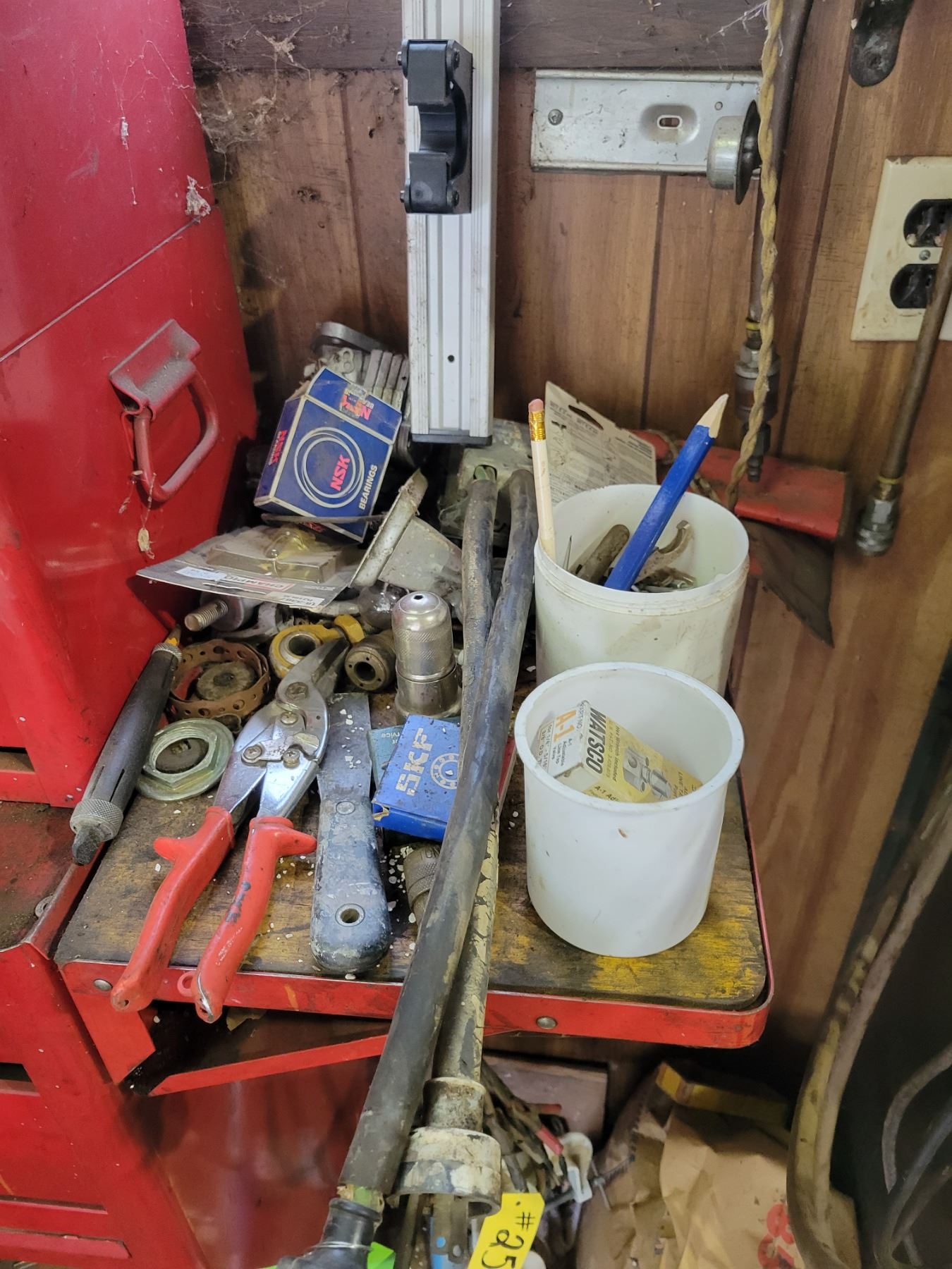 Small 12V trolling motor, floor dry, tin snips and misc.
