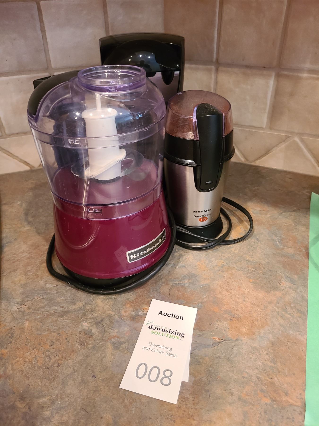 Lot includes KitchenAid small processor, Black and Decker grinder and can opener. Pickup 9 am.