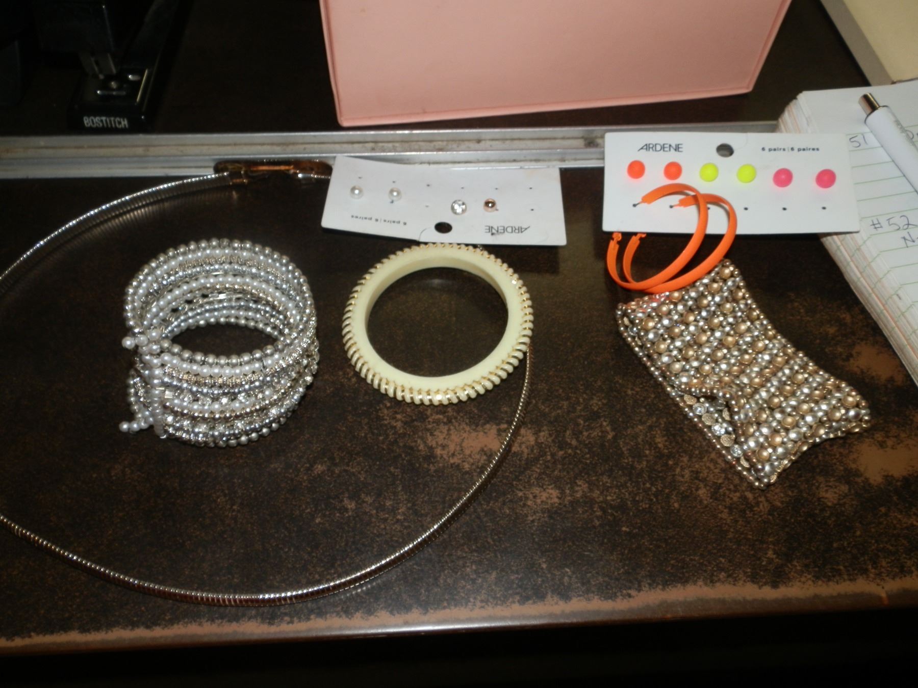 Small Box Of Costume Jewelry, head bands, bracelets, rings, ear rings, necklaces and more...used