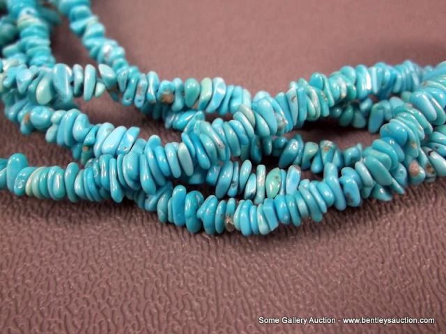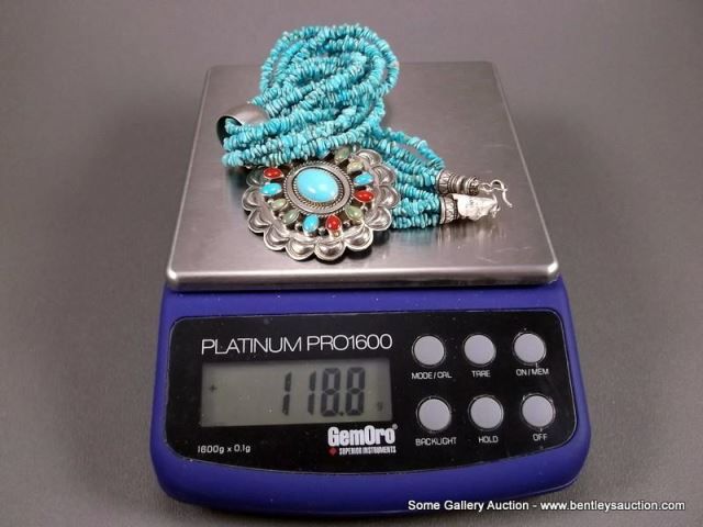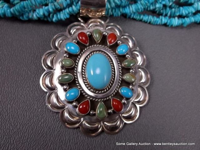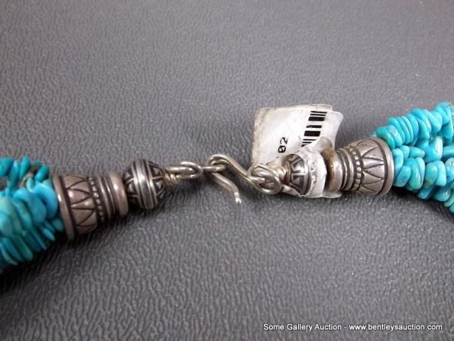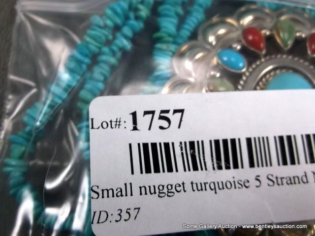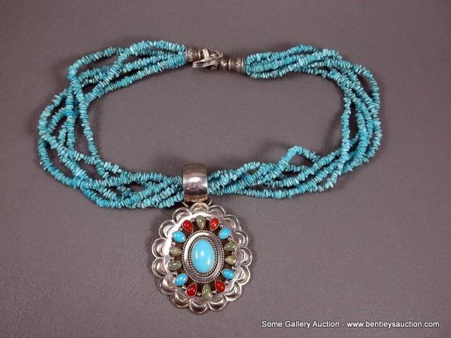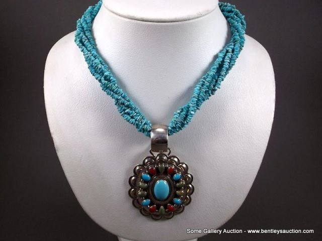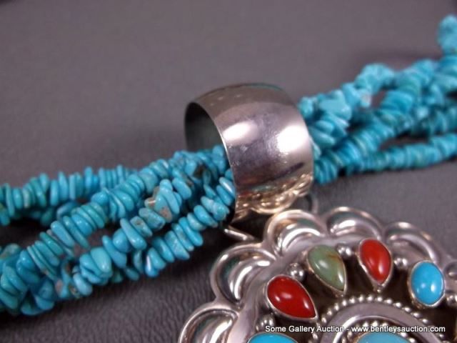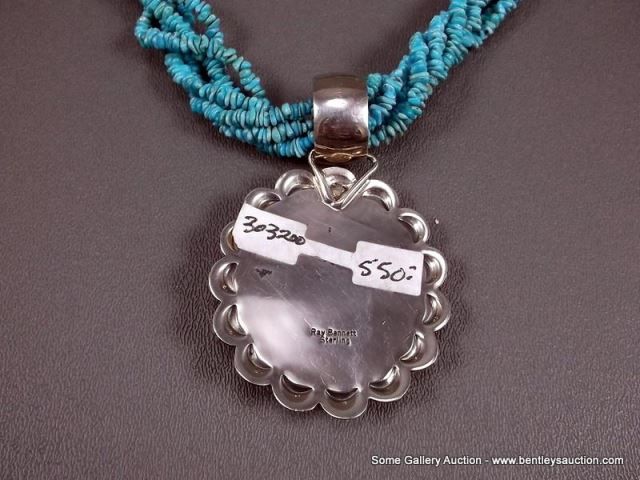 Small Nugget Turquoise 5 Strand Necklace w/ Sterling Silver Pendant-Pendant Marked Ray Bennett Weigh