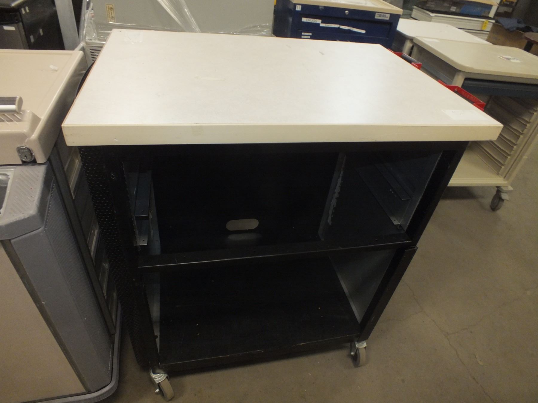 Small Work Table On Wheels, 35"l 24"w 41 1/2"h, no drawers...used