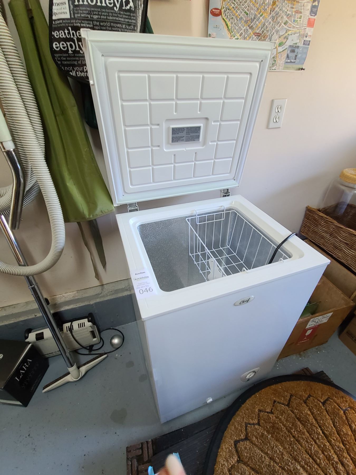 Small freezer made by MasterChef 22x29x33 in working condition. Bring help to move. Pickup 9 am.