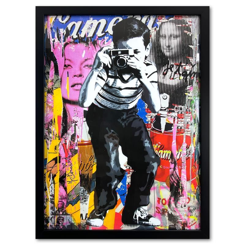 Smile is an offset lithograph on paper by Mr. Brainwash, bearing the plate signature of the artist. This piece comes custom framed. Measures approx. 33 x 25 (frame), 30.5 x 22.5 (image).