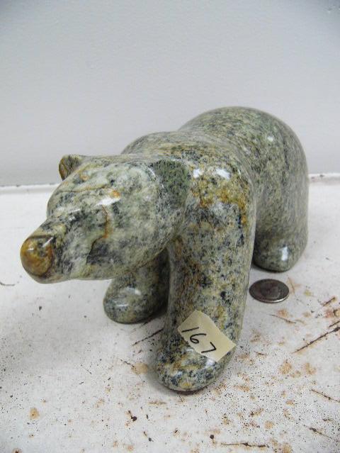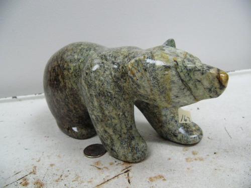 Soapstone carved bear by Michael Scott, 9-1/2" and 4-1/4" tall (86)