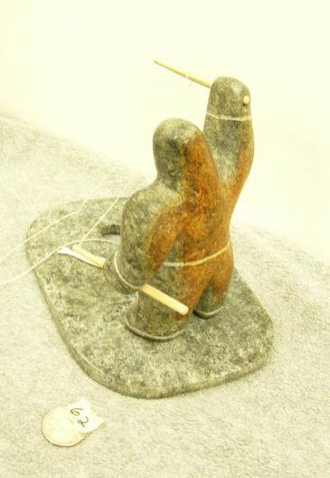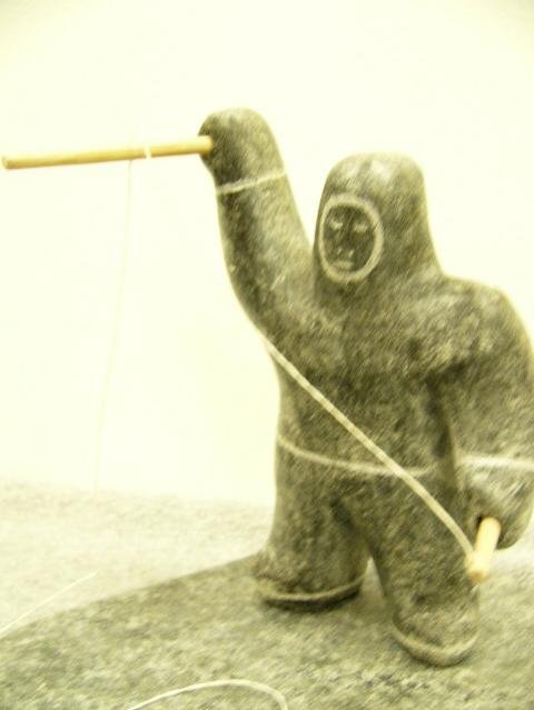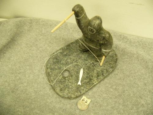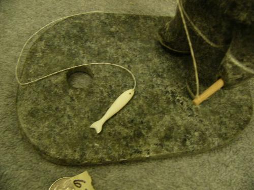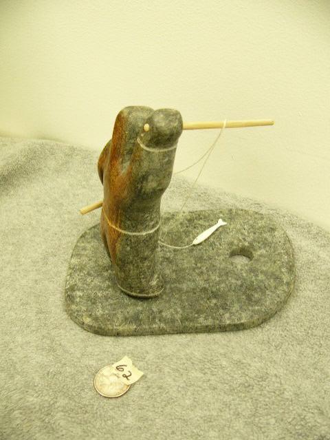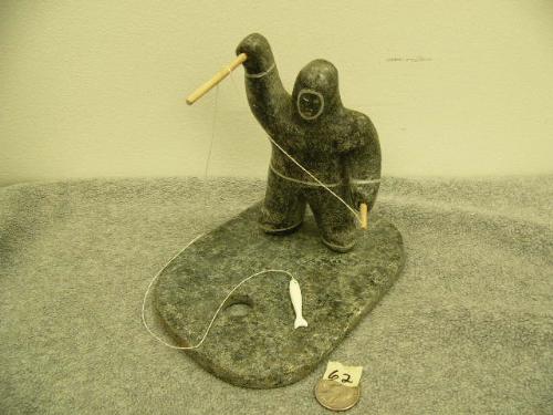 Soapstone ice fisher with ivory fish 6.25" (33)