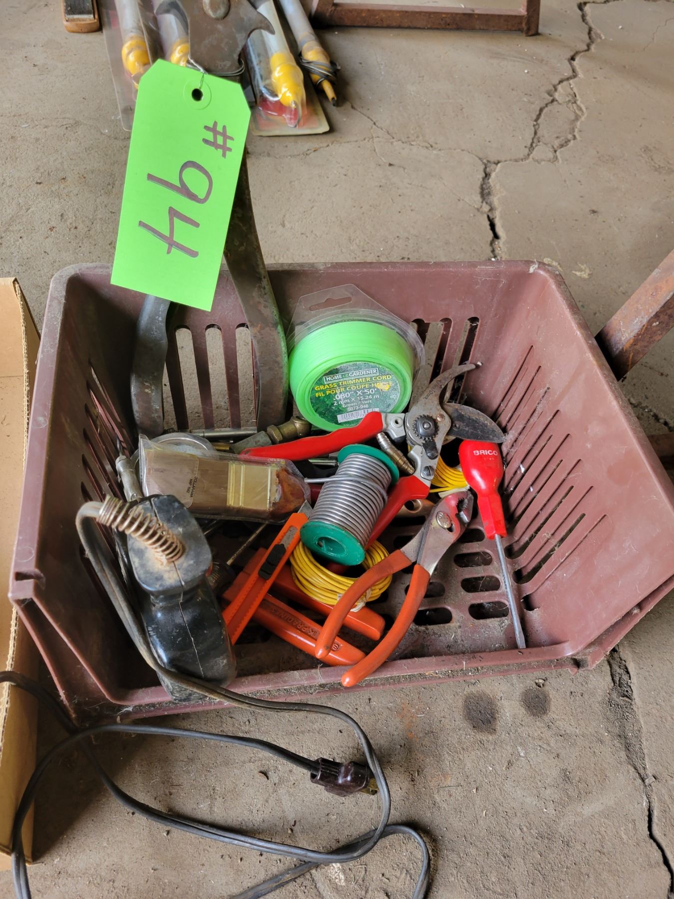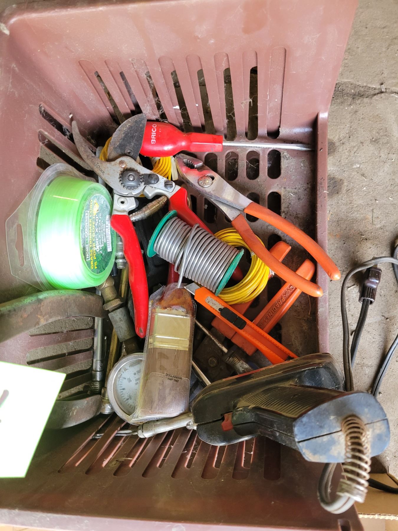 Soldering gun, Soldering wire, air chuck, tire chain tools and misc.
