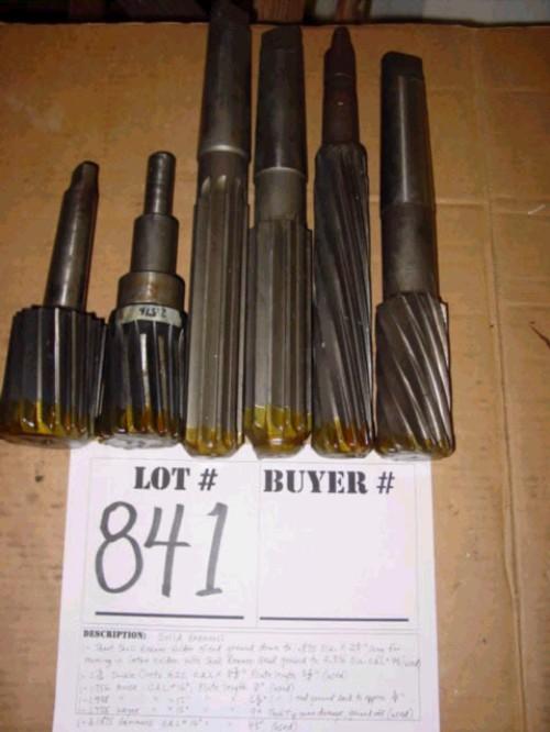 1 - Short Shell Reamer Holder w/end ground down to .875 Diameter X 2 1/4" long for reaming in lathe holder. With shell reamer head ground to 2.376 Diameter O.A.L. = 9 1/6" (Used). 1 - 2 13/16 Double Circts H.S.S. O.A.L. = 8 7/8" Flute length 3 5/8" (Used) 1 - 1.756 Morse O.A.L. = 16", Flute length 8" (Used), 1 - 1.998 Morse O.A.L. = 15" Flute Length 6 5/8 " (Used) End ground back to approx. 3/8". 1 - 1.755 Wayne O.A.L. = 15", Flute Length 9" Tank tip some damage, ground off (Used), 1 - 2.1875 Gammons O.A.L. = 14" Flute Length 4 1/2" (Used).