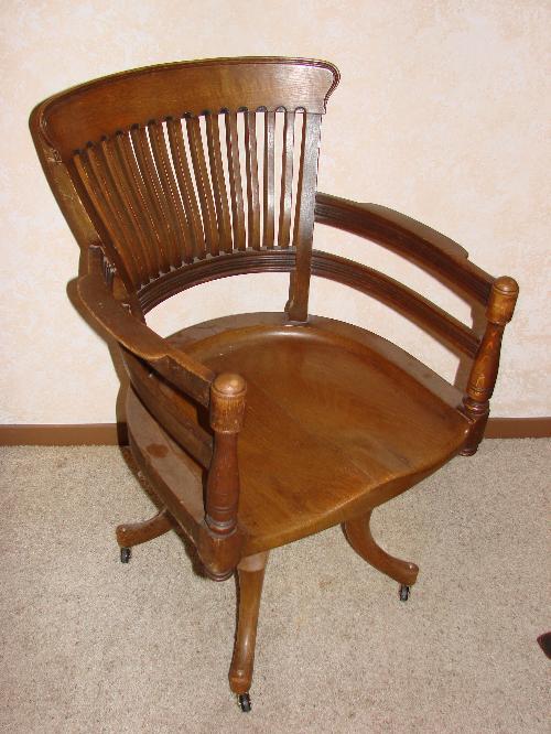 Solid oak swivel chair with original label under seat (Edwards & Roberts)