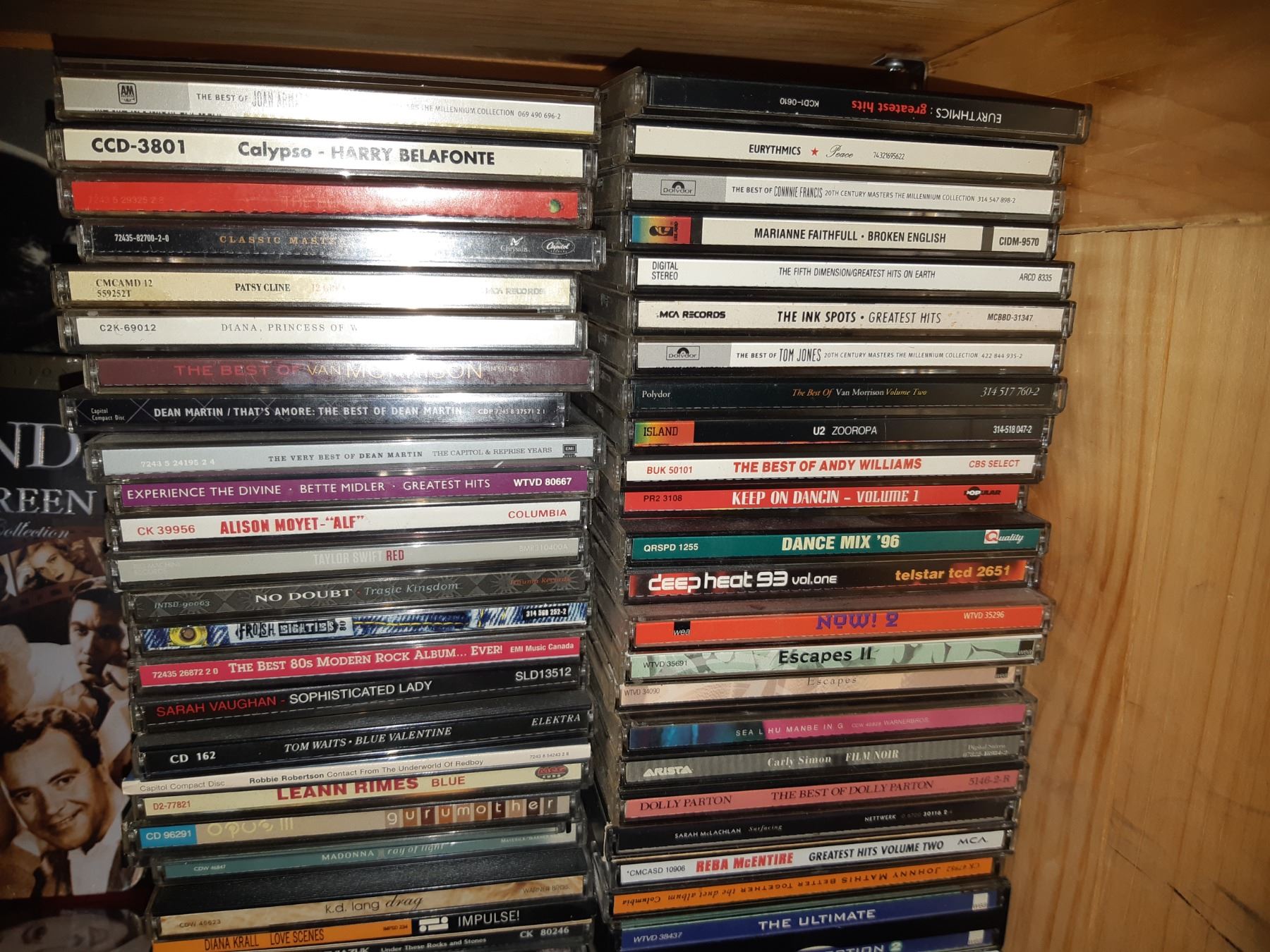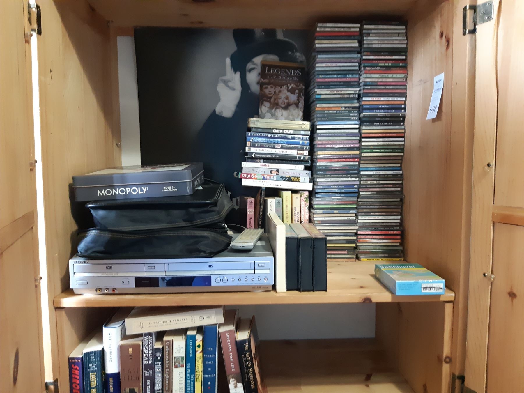 Sony DVD/VHS SLV-D370P player,untested. many CDs including Leann Rimes, The Young Cannibals, Cole Porter, Rod Stewart, and more. Includes VHS movies, books, and large case of CDs and a poster. Bring help to move. Pickup at 9 am.