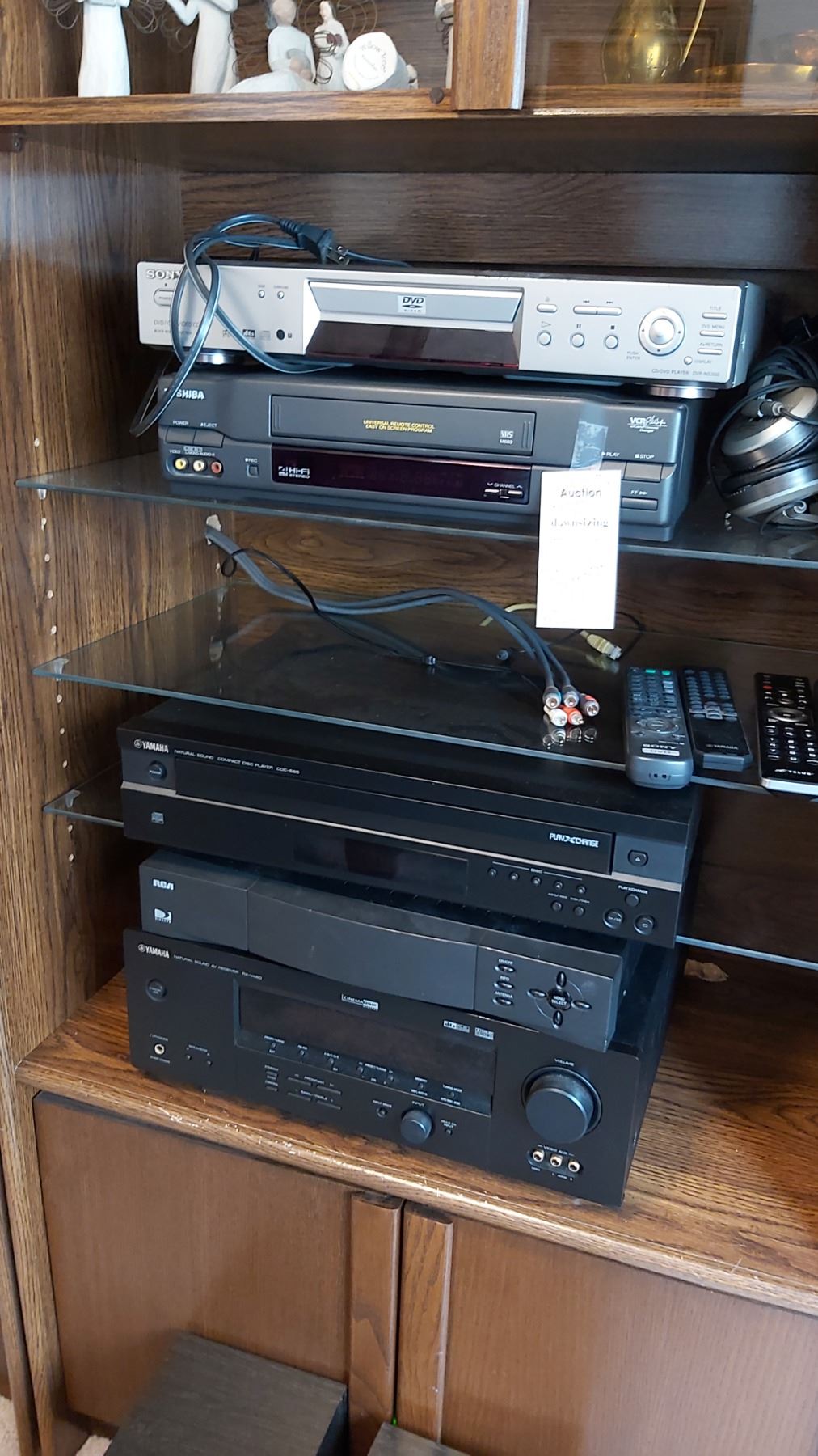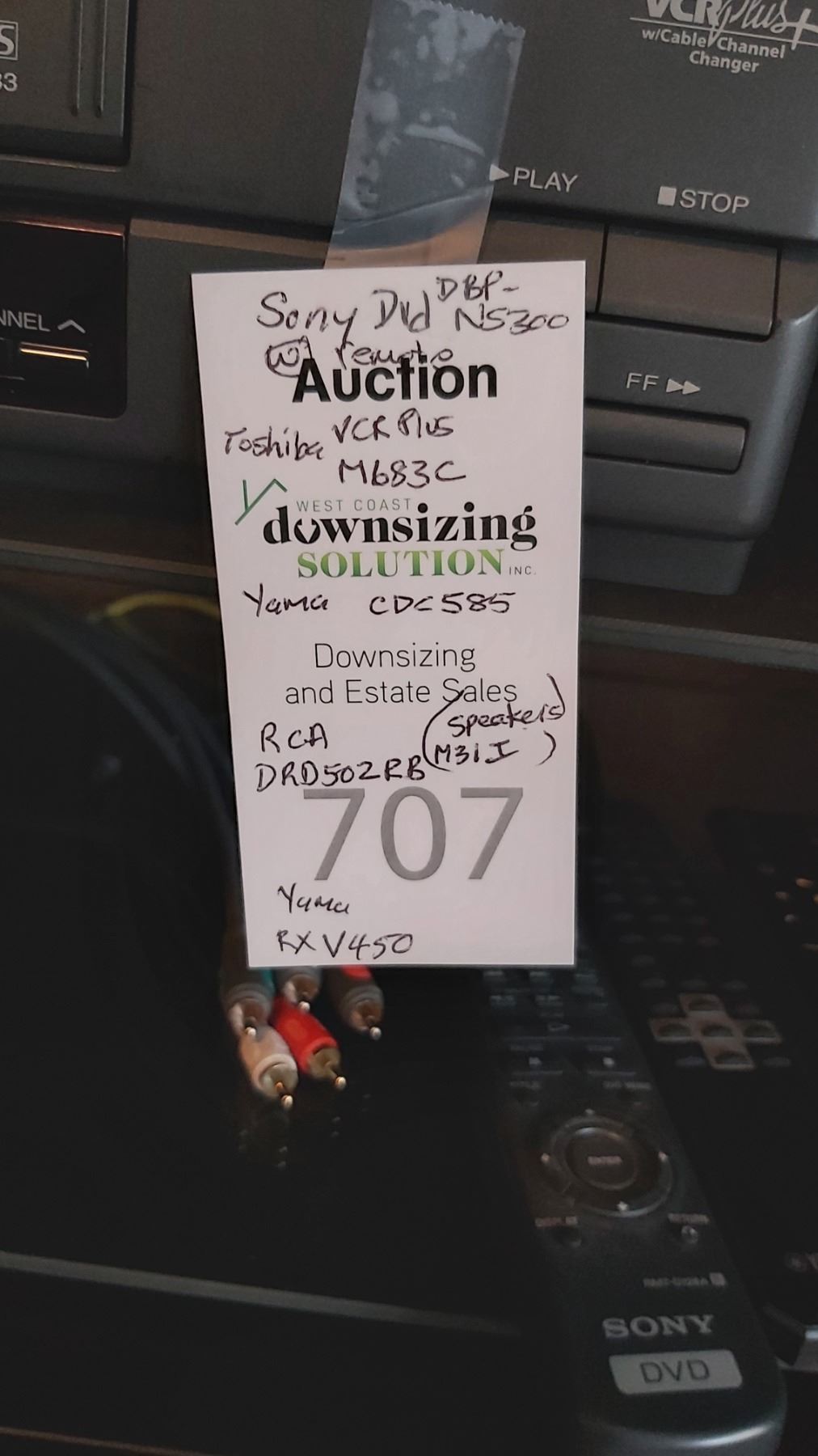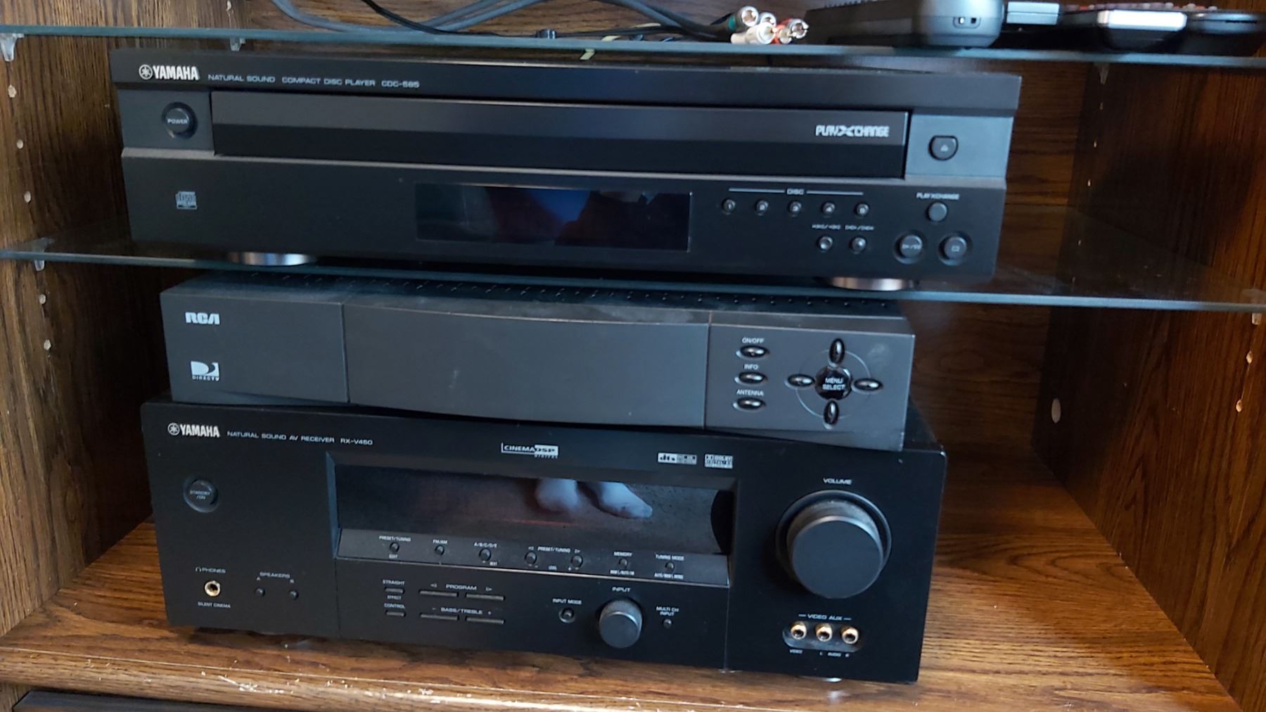 Sony DVD, ToshibaVCR, Yamaha Disck Player , RCA Direct TV, Yamaha Receiver. 2x Mission Speakers. 7x7x10. Pickup at 9 am