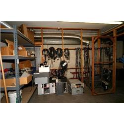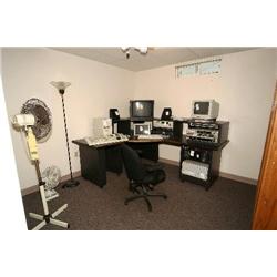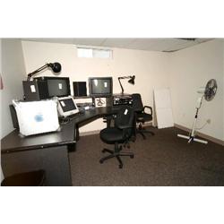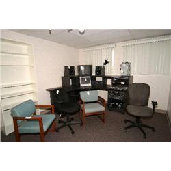 contents of room - incl. Symetrix 420 20W amp, Yamaha MV802 mixer, KRK 9000B speakers, Horita RM50 black burst, JVC VCR BR-S525DXU, SCSI 7 bay (2 narr
