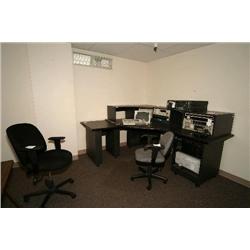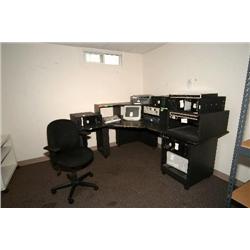 workdesk, equipment racks, video deck switches - room 208 Hall