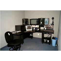 chair, workstation with 52 point TRS patch bay and Furman PL-Plus power conditioner - room 110