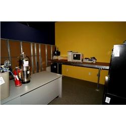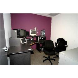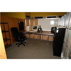 2 desks, bookcase, worktable, 6 chairs, 2 tables, whiteboards, shelves - room 131 and 131 Hall