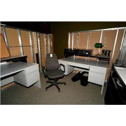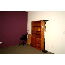 workstation, 2 chairs, 2 bookcases, refrigerator, lamp, drawers - room 137