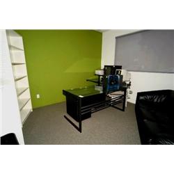 glass desk, 3 chairs, sofa, bookcase, cabinet, 2 lamps - room 166