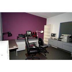 desk, 2 chairs, table, credenza, 2 bookcases - room 170