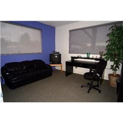 glass desk, sofa, 2 bookcases, 2 drawer files - room 169