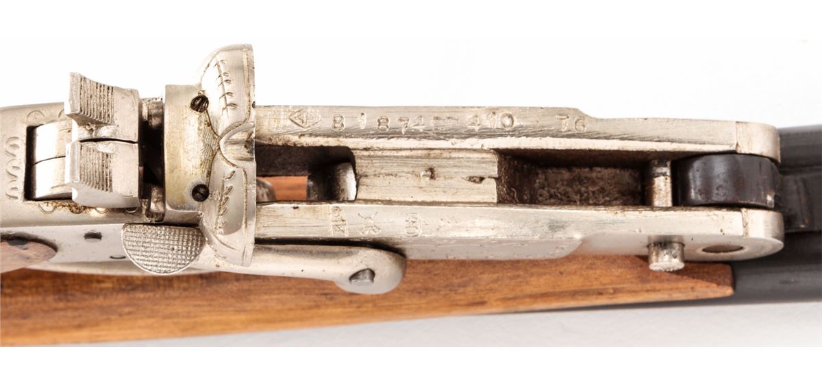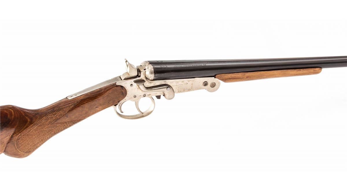 Spanish El Faisan Side-by-Side Shotgun, #81874, .410 ga., 27-1/2'' blue barrel, nickel frame, olivewood stock and forend. Mfg'd mid-1970s. Condition is near excellent showing little use. Est.: $150-$300. (Modern)
