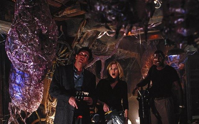 Species II (1998) - Gamble's (Mykelti Williamson) screen worn, bloodied, brown suit pants with black belt. Includes costume department wardrobe tag.
